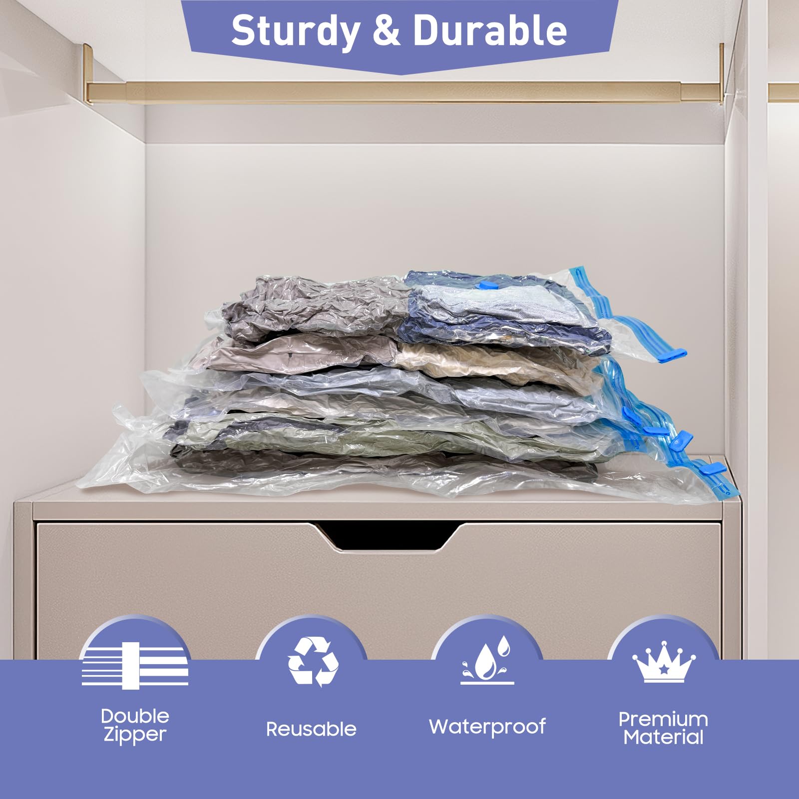 • 【Easy to Use】: Package includes a hank pump, but you can vacuum the bags with the vacuum cleaner and get the compression done fast and easy.