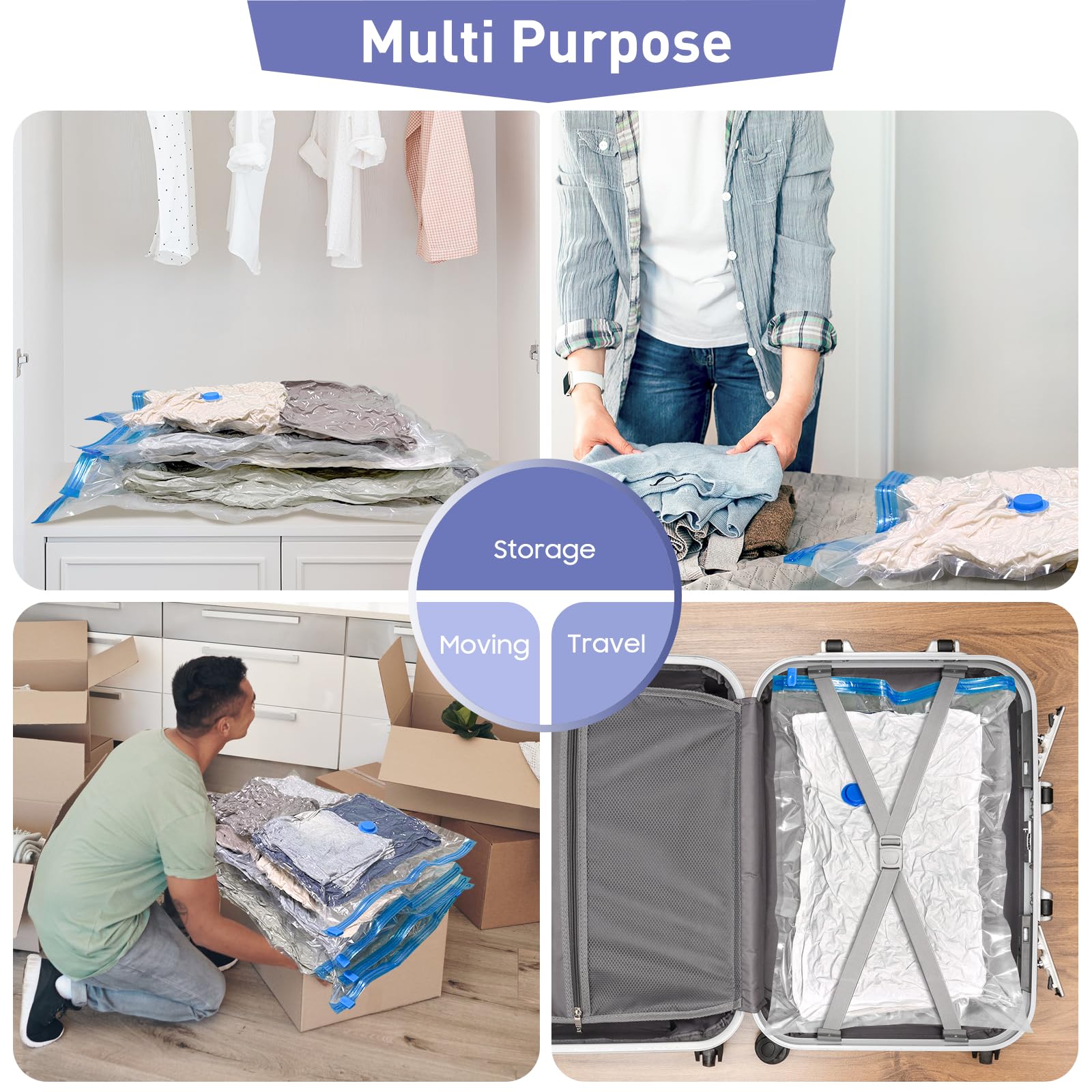 • 【Multi Purpose】 These thick and sturdy vacuum storage bags are design for both indoor and outdoor use. They can efficiently reduce the storage space, which is great for household storage, travel and moving.