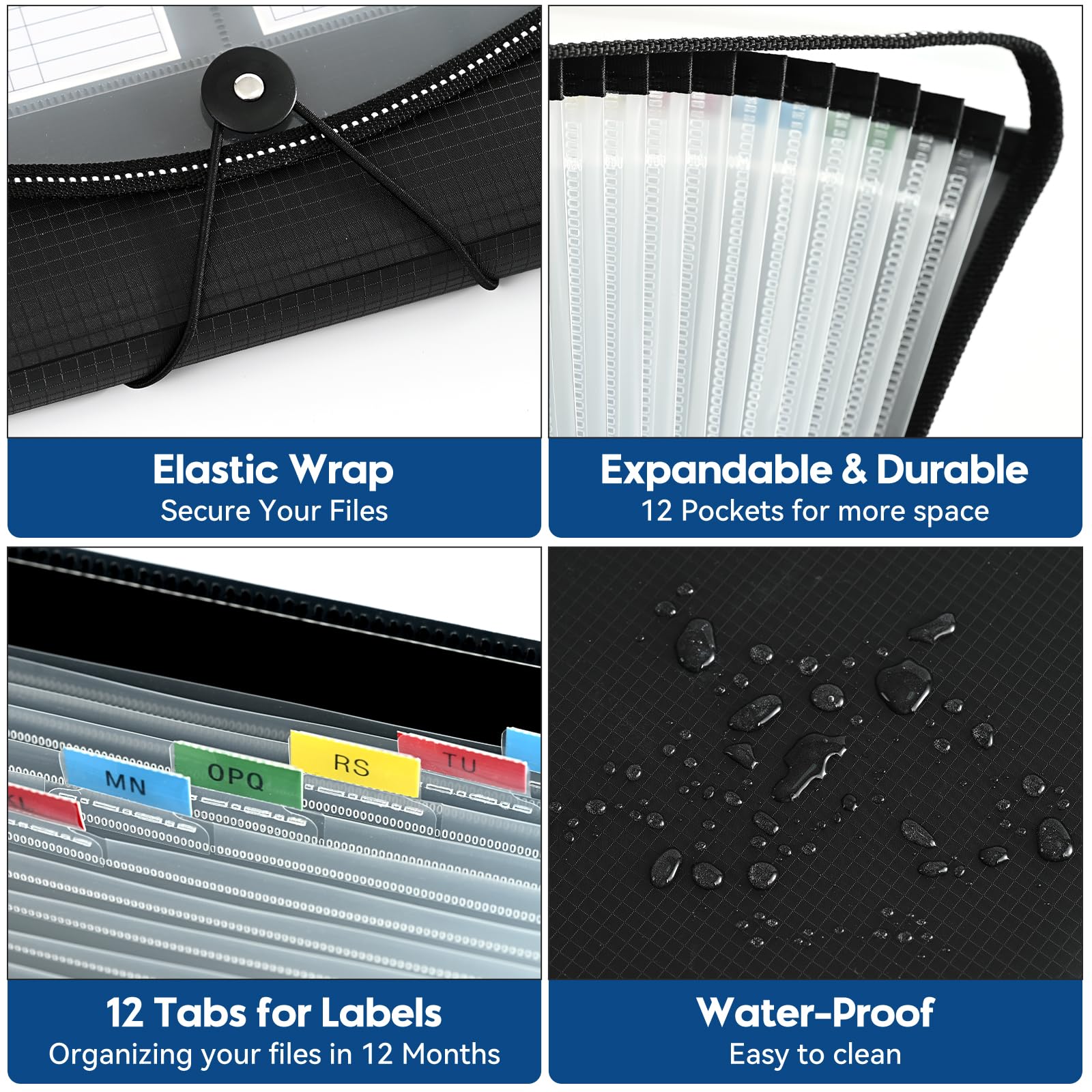 - Efficient Organization: Stay organized with our premium accordion file folder featuring 12 pockets and 12 tabs. It provides ample space to categorize and store your important documents, ensuring easy access and efficient organization.