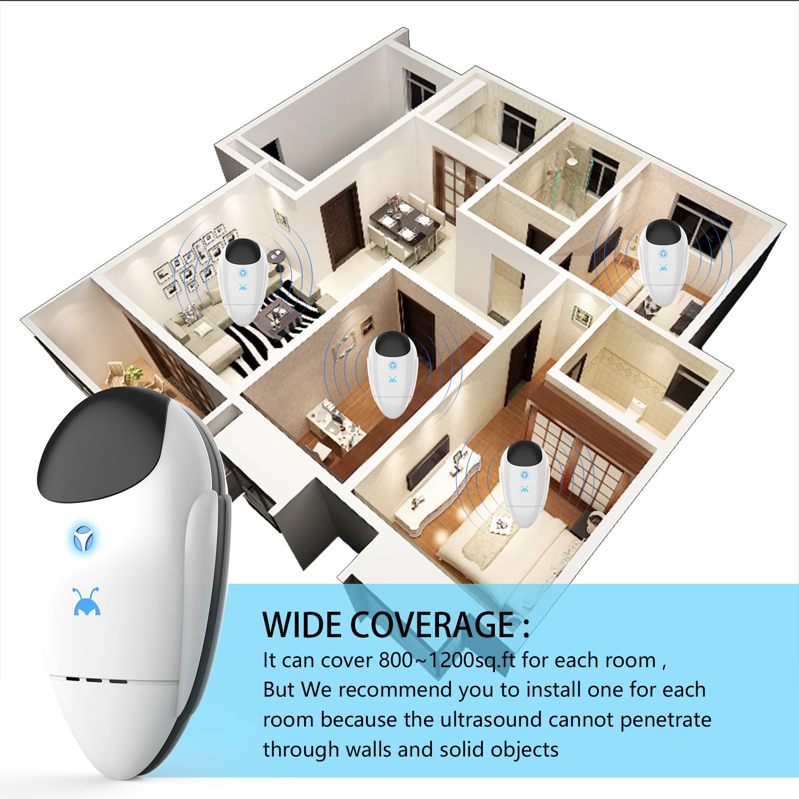 - Wide Coverage Area: Effective in areas up to 800-1200 square feet, this device works best in open spaces. For optimal results, use one unit per room, as ultrasonic waves do not penetrate walls.