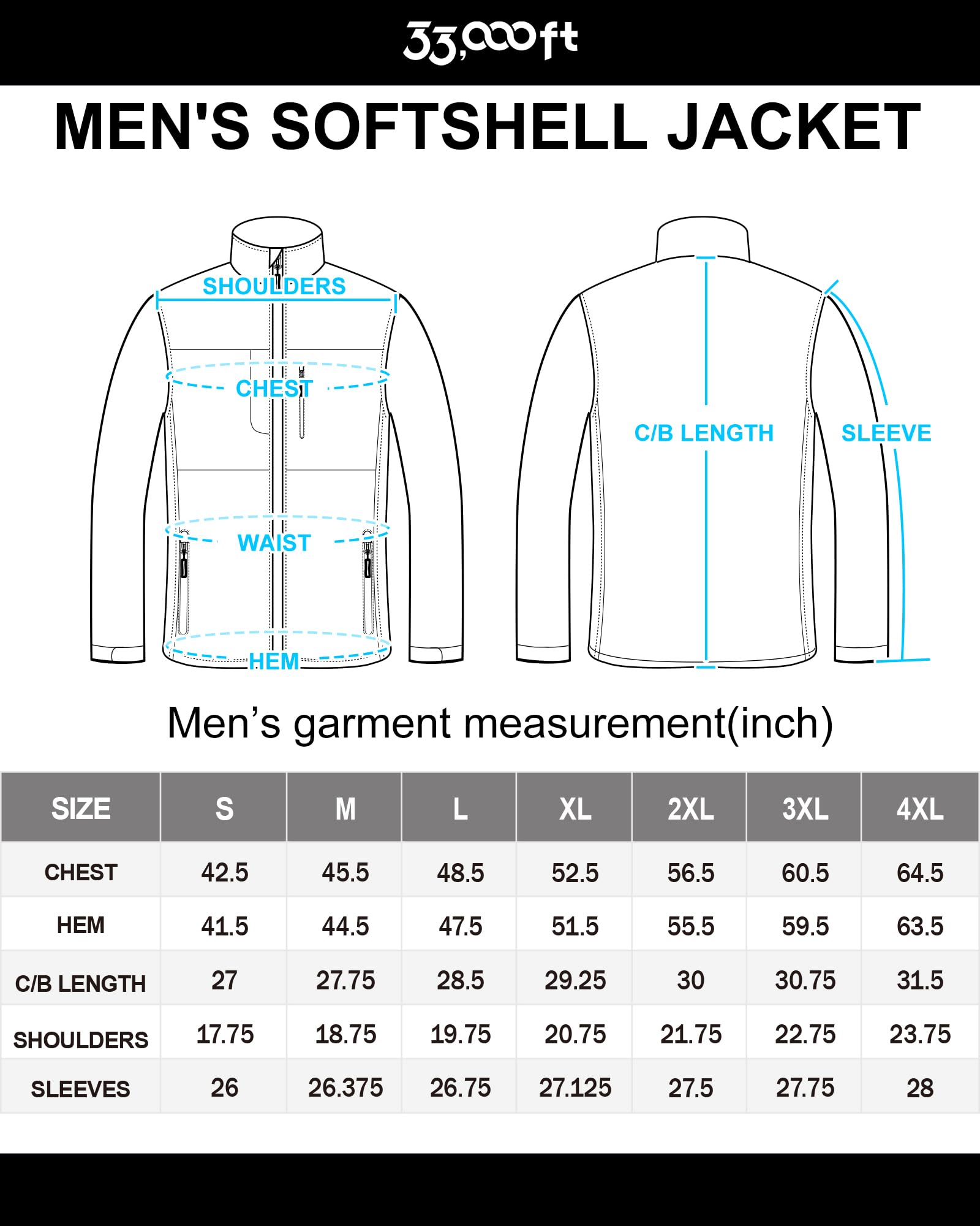 33,000ft Men's Lightweight Softshell Jacket Warm Fleece Lined Windbreaker Waterproof Soft Shell for Outdoor Hiking