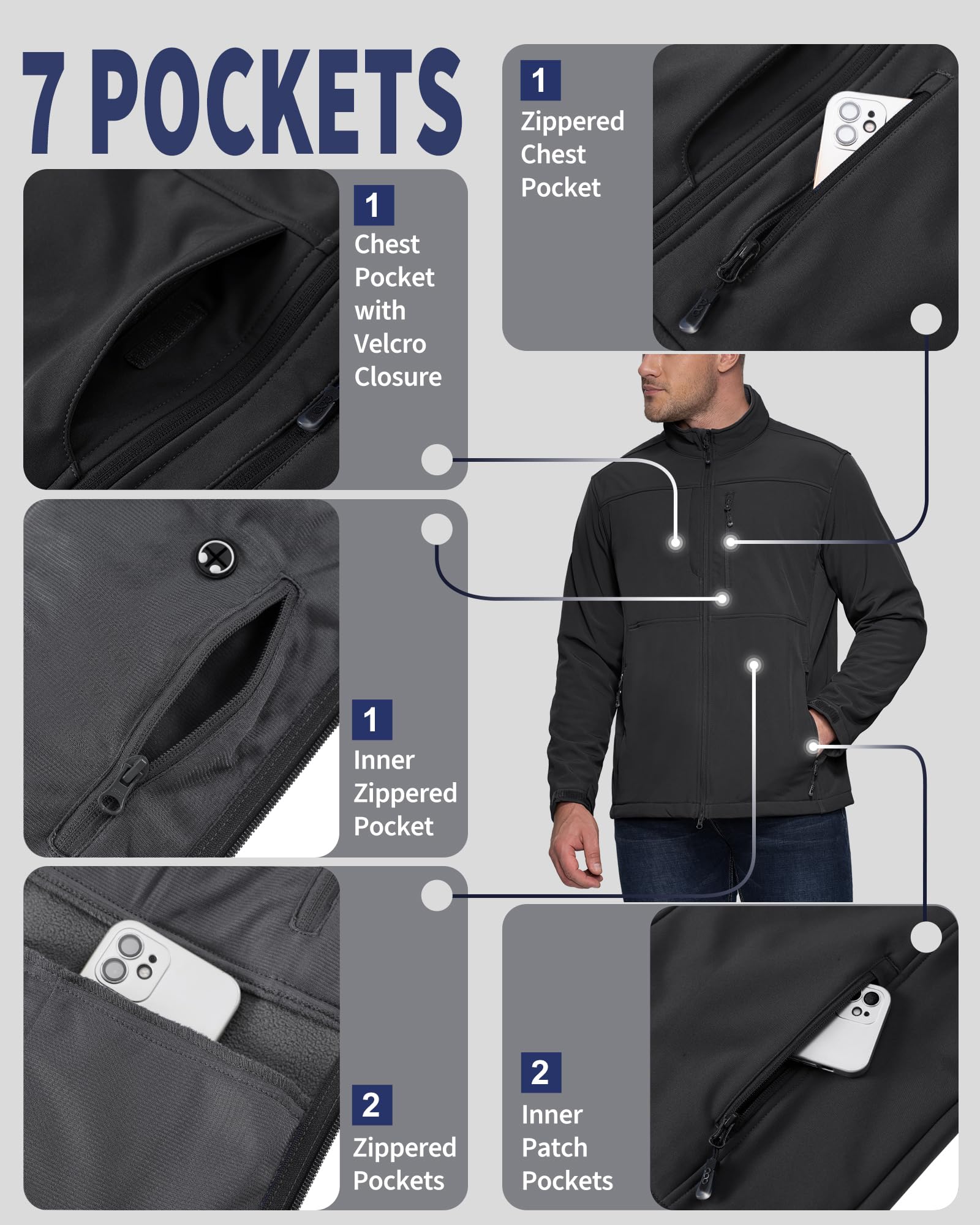 - MEN'S WINDPROOF JACKET FOR WINTER, FALL & SPRING ---The sleek softshell fabric is stain & abrasion resistant and windproof to keep you warm and neat. The fleece insulation traps heat, but still allows air to flow so you don't overheat.