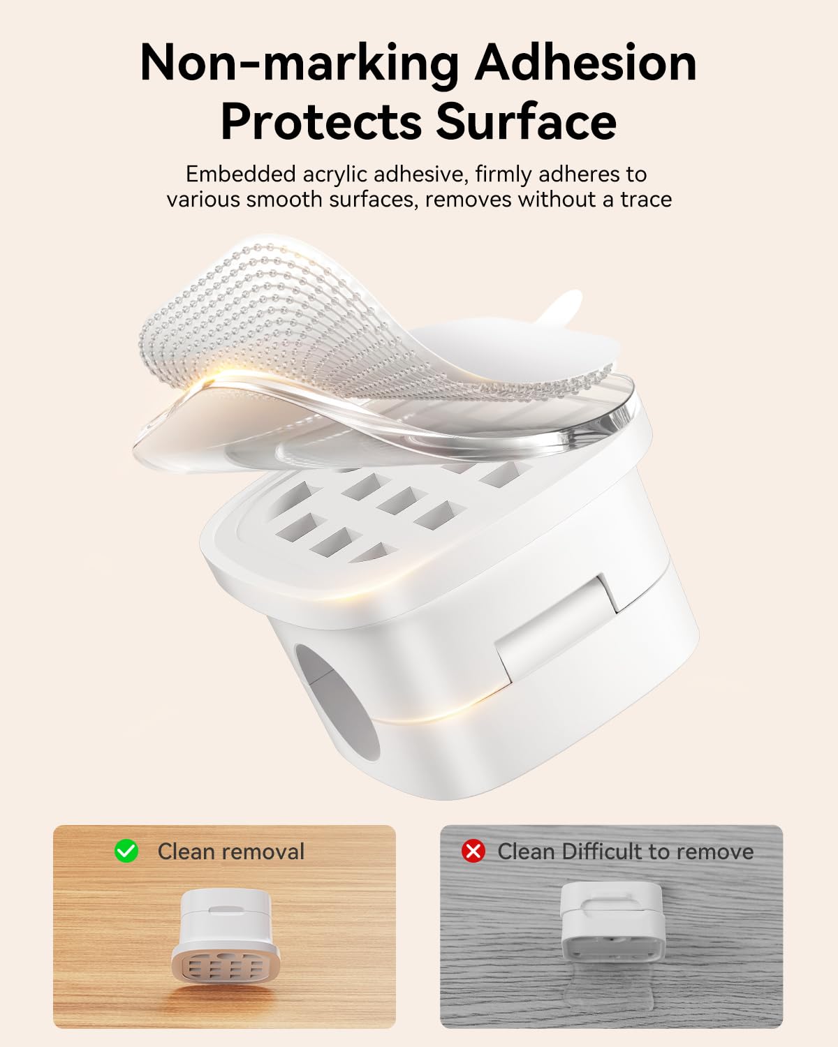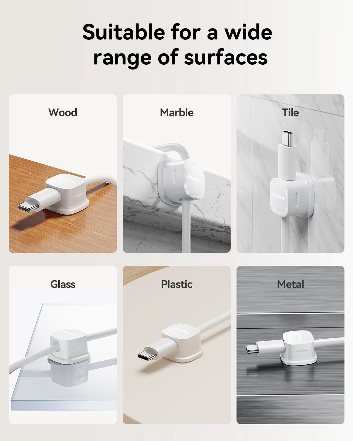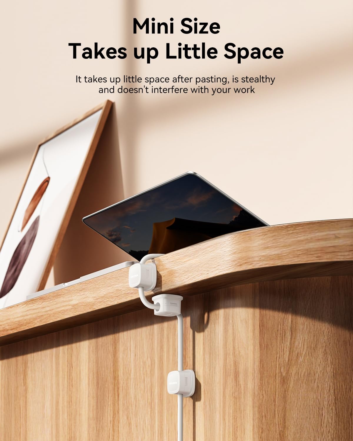- Super Adhesive:The cable management Equipped with Upgrade Acrylic Adhesive, the adhesiveness is increased by 300% compared to ordinary 3M. It firmly adheres to smooth surfaces such as wooden tables/glass/ceramic tiles, and does not leave any residual glue after removal. Each box comes with a Reusable Adhesive Pad, which extends the service life and is more environmentally friendly and economical.