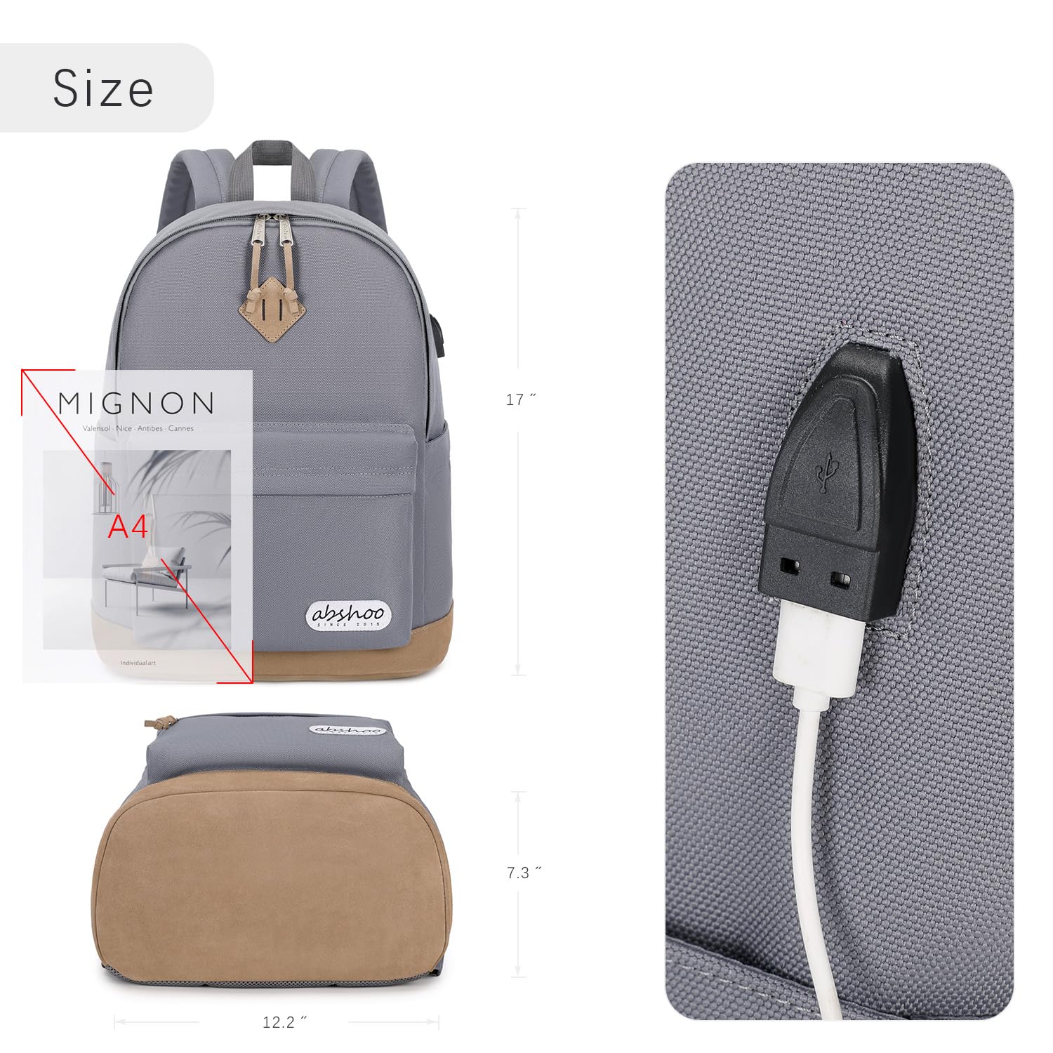 abshoo Basic School Backpack For College Middle High School Water Resistant Bookbag Travel Daypack(Gray)