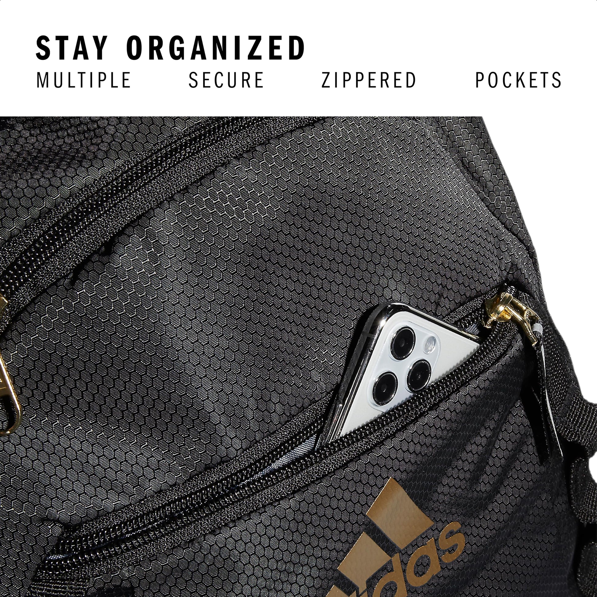 adidas Excel Backpack for Men & Women – Durable Large Athletic Laptop Bag, Black/Gold Metallic, One Size