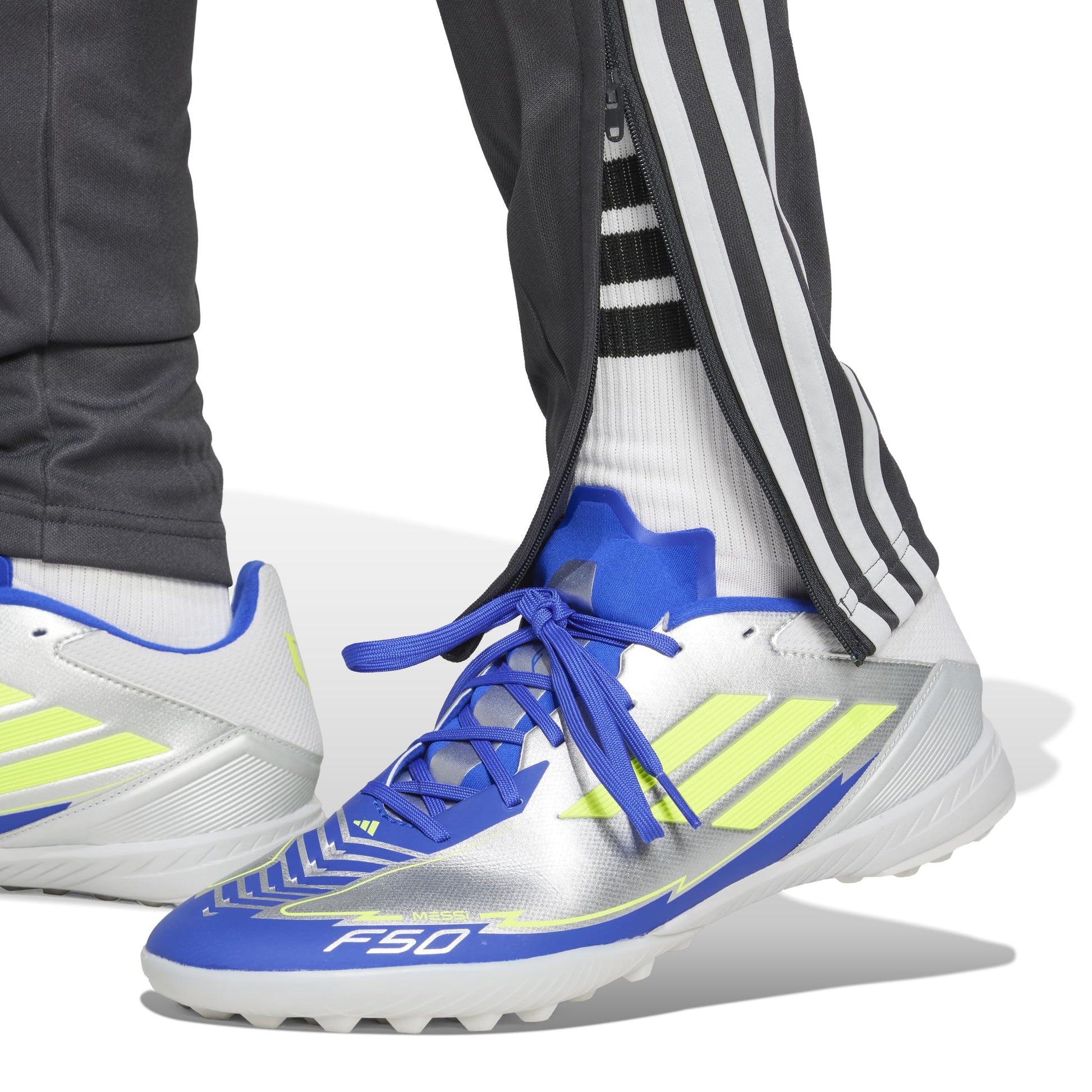 Training pitch style for fans of soccer greatness. These men's Messi pants from adidas inspire you to hit your goals with a 3 Bar Logo on one leg and a Lionel Messi logo on the other. Zip pockets hold your essentials as you head out to the field or relax after a session.