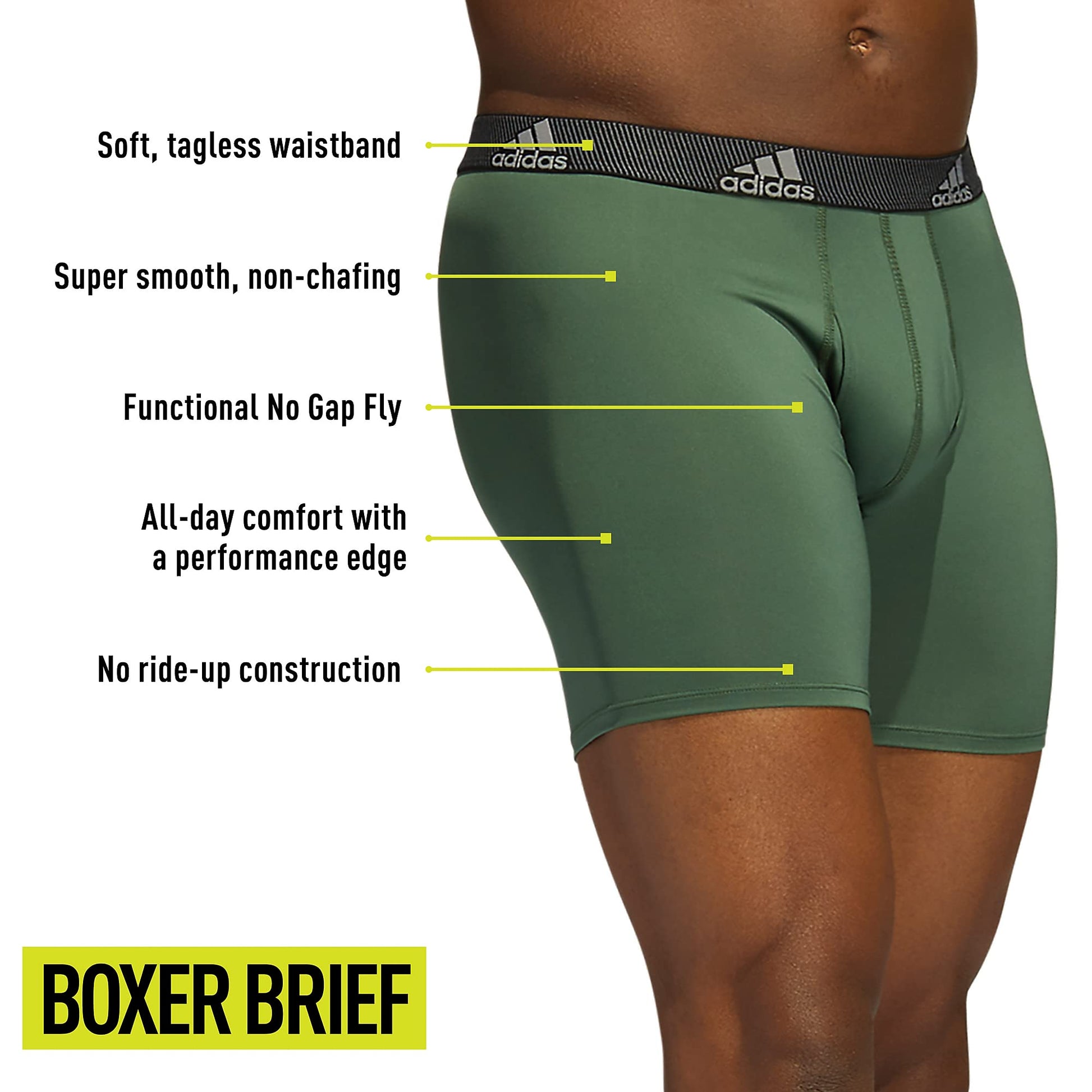 Introducing the adidas Men's Performance Boxer Brief Underwear, an essential choice for anyone seeking comfort and functionality. This 3-pack of men's athletic underwear is designed with the modern man in mind. Crafted with precision, the mens boxers briefs feature a 5-inch approximate inseam, offering all-day comfort with a performance edge. The mens boxer briefs quick-drying properties make helping you stay cool and dry, making them perfect for any activity. Our Adidas underwear men boxer brief blends soft, stretchy, quick-drying material with an athletic comfort fit. Each pair of boxer briefs men comes equipped with a functional, no-gap fly for added practicality. The plush-soft tagless waistband and super smooth stitching make these underwear mens a top choice for the ultimate in ease and wearability. Whether you need boxer briefs for men for workouts or everyday wear, adidas boxer briefs men deliver. Experience the comfortable feel of this underwear men boxer briefs collection, designed to keep you at your best. Choose adidas Microfiber Boxer Briefs for a blend of style, comfort, and durability.