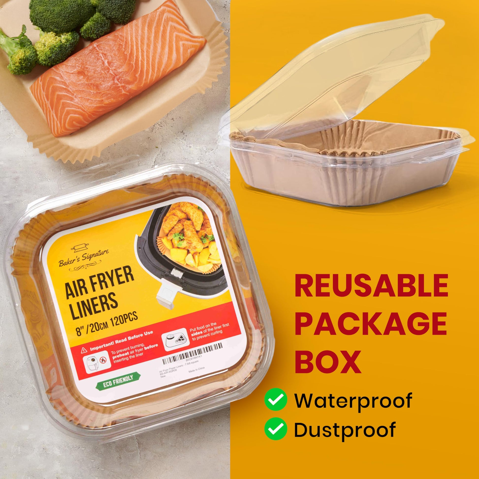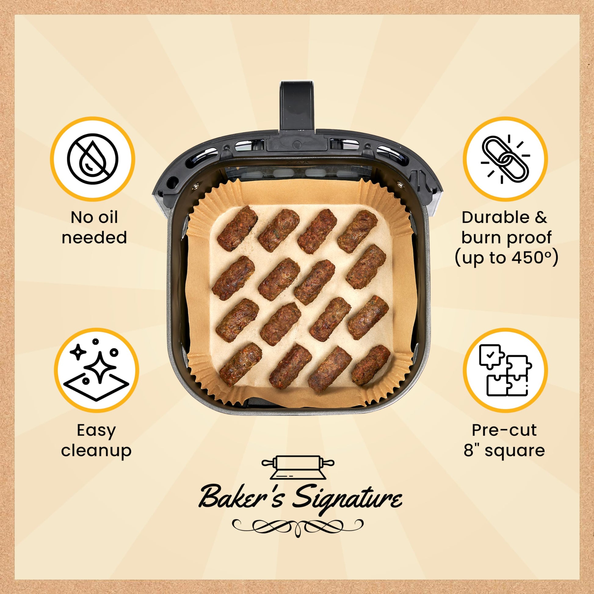 Air Fryer Paper Liners, 125Pcs Air Fryer Disposable Liners, Non-Stick and Oil Proof for Easy Cleanup, 8” Square for 5-8 qt Basket by Baker's Signature