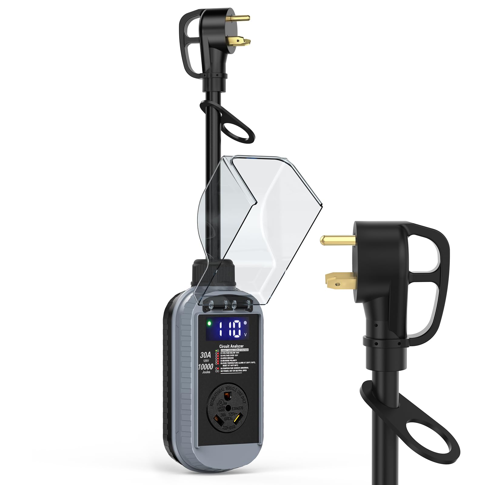- 【Full Circuit Analyzer】: This 30-amp smart surge protector can not only detect common wiring faults such as open ground or reverse polarity, but also includes voltage and temperature monitoring. This comprehensive protection prevents low or high voltage from damaging your appliances and prevents circuit burnout.