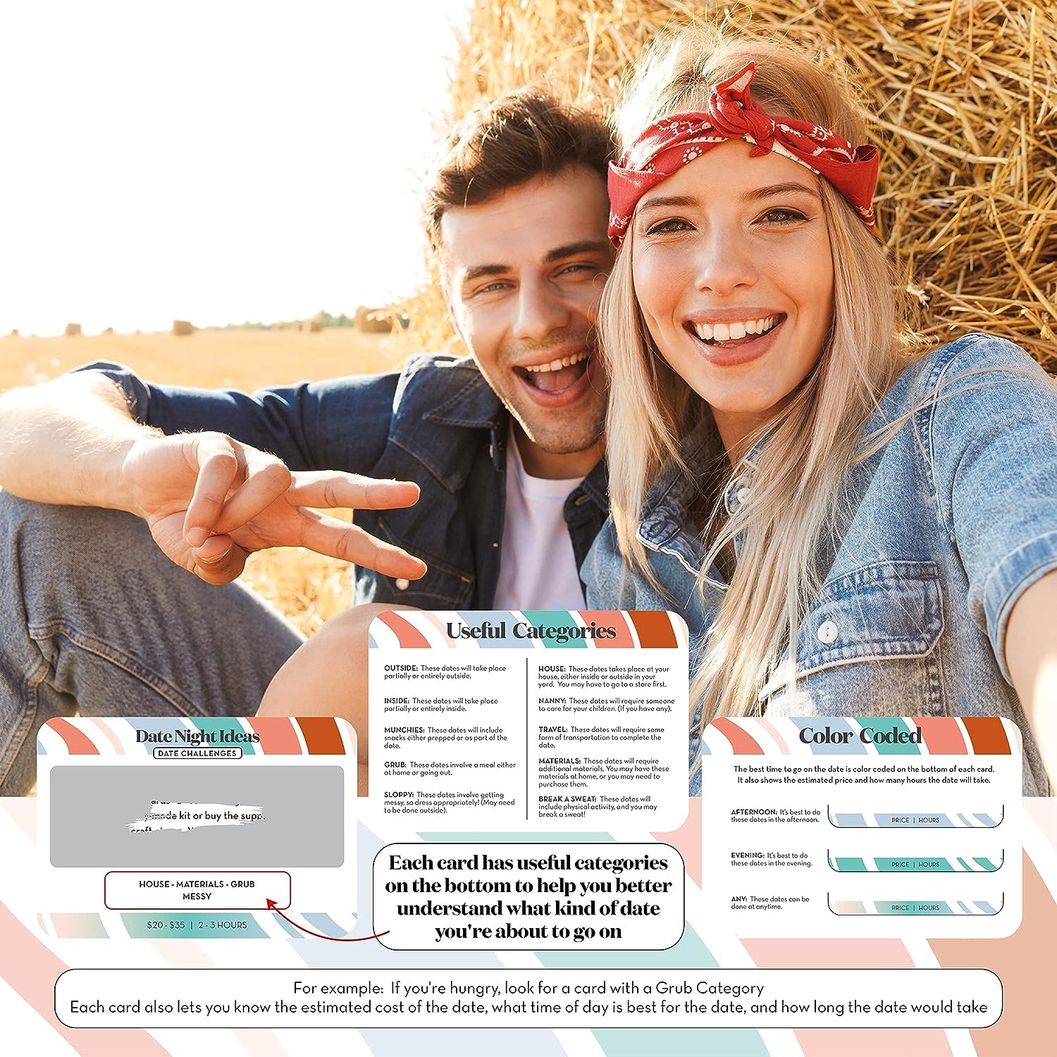 - WHO'S IT FOR:? This is one of the best couple challenge games there is. Whether you just started dating, or have been in a relationship / married for over 10 years, the date ideas in this deck of cards are guaranteed to be unique and provide a fun date that you have never tried. Fall in love with your partner all over again with these date night cards. It's a perfect anniversary gift for couple.