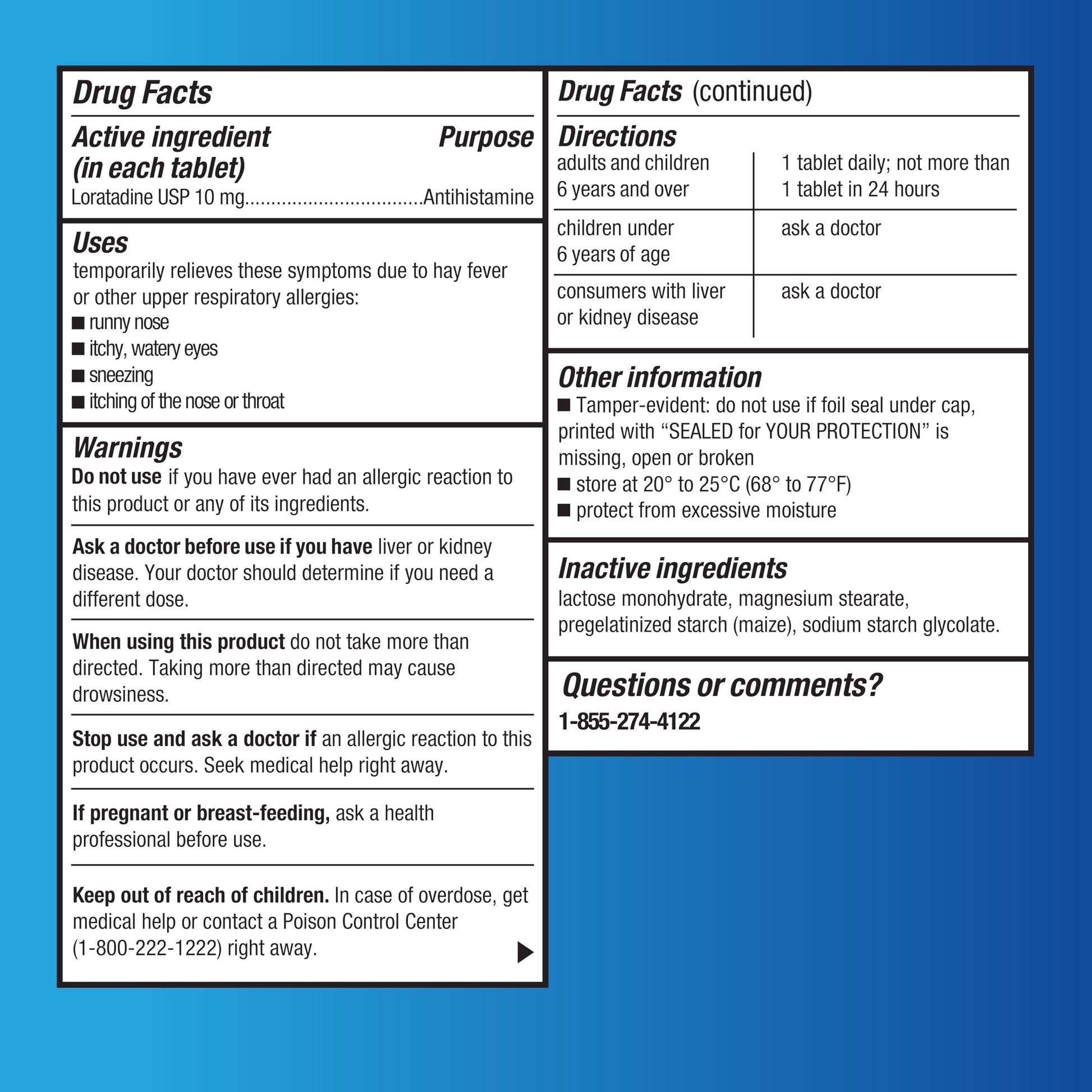 Details: ACTIVE INGREDIENT: The active ingredient is Loratadine 10 mg, an antihistamine; compare to the active ingredient in Claritin