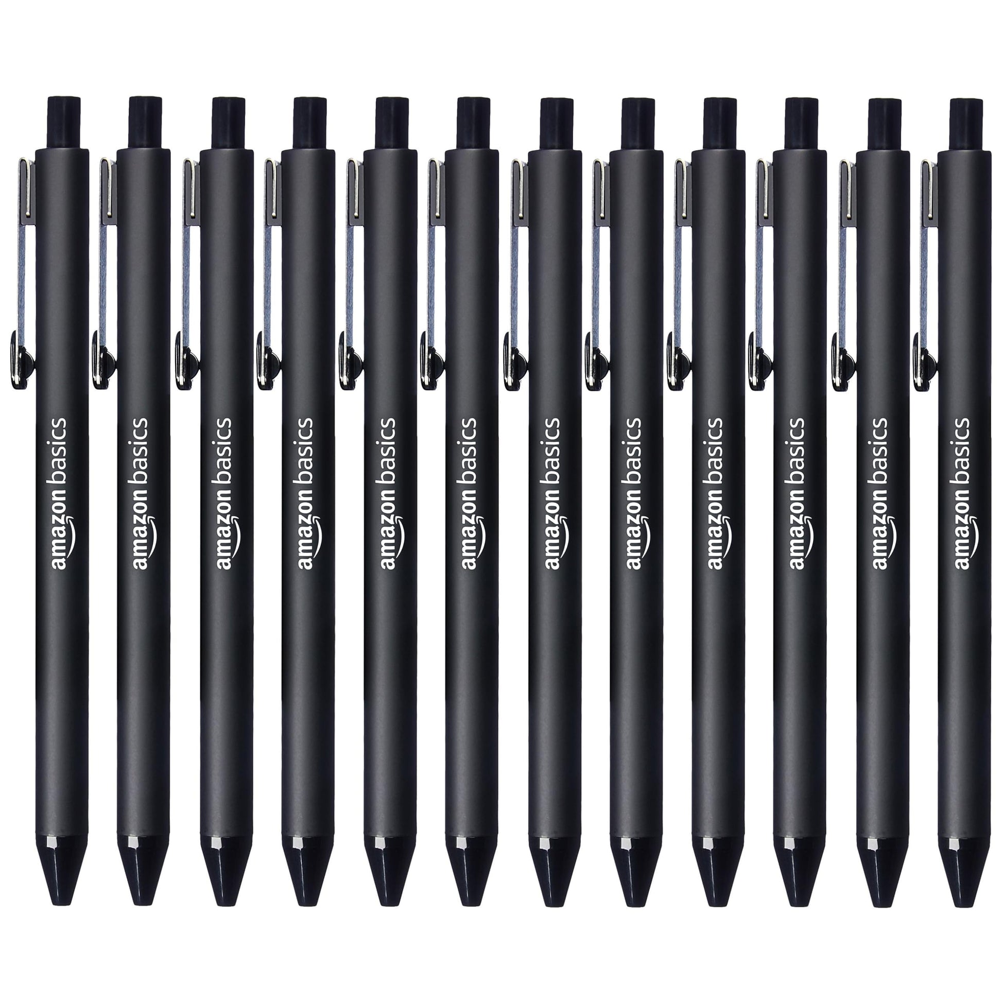 Amazon Basics Black Ballpoint Pens for Smooth Writing, Retractable, 12-Pack