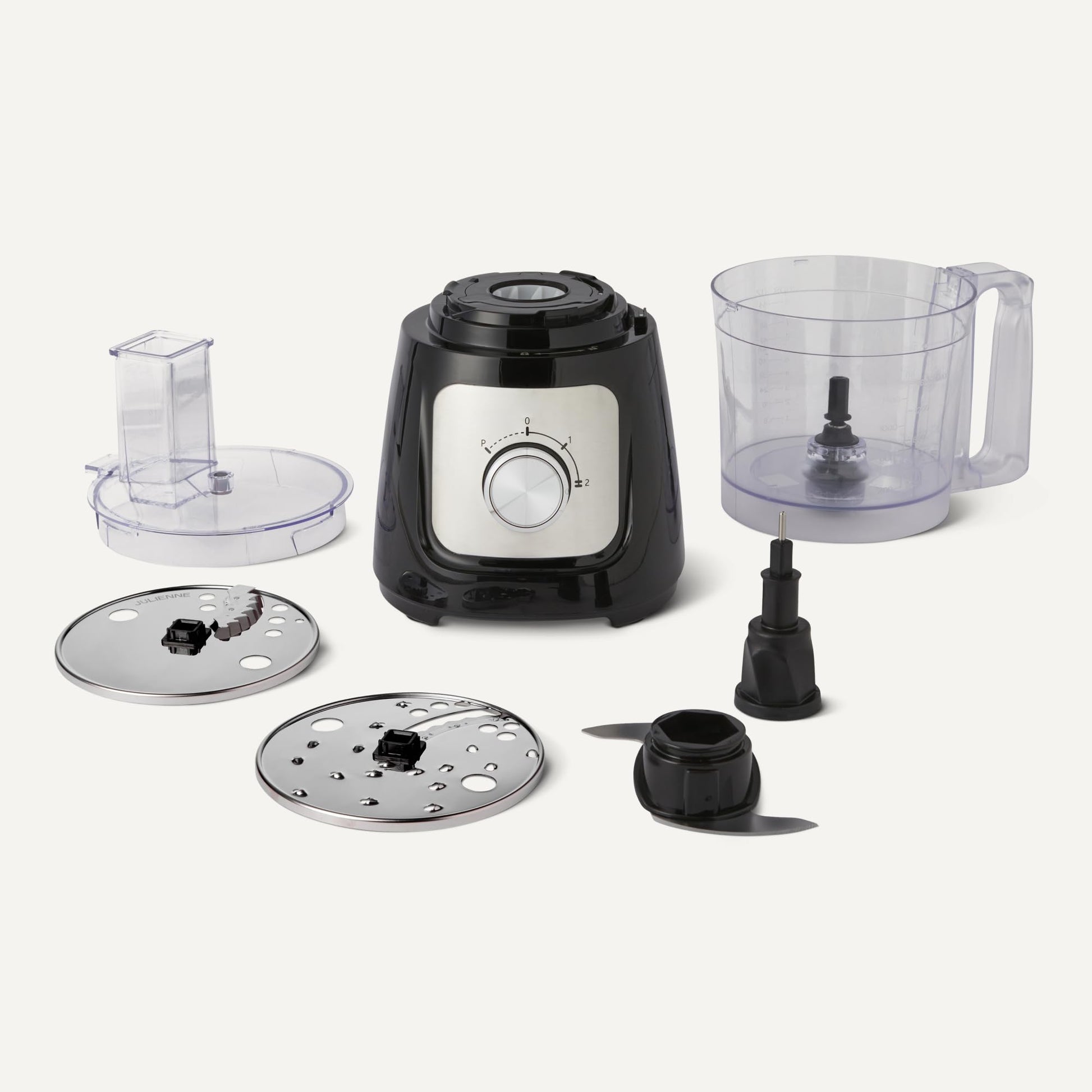 • VERSATILE ATTACHMENTS: Includes stainless steel shredding blade and disc stand, and food pusher for various food preparation needs