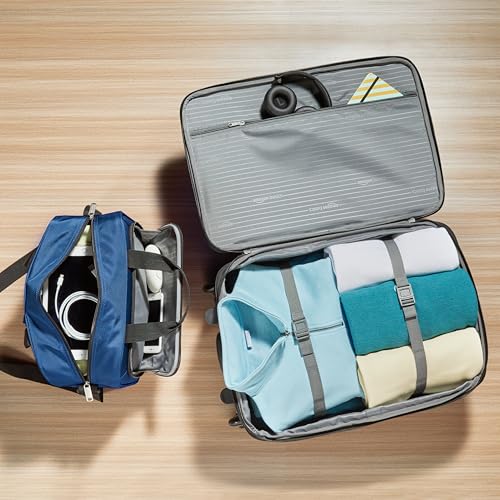 Amazon Basics Luggage Sets, Carry-On 23-Inch, tote 15-Inch, Suitcase With Wheels, Expandable Extra Space (+15%), Front Pockets and Telescopic Handle, Navy Blue