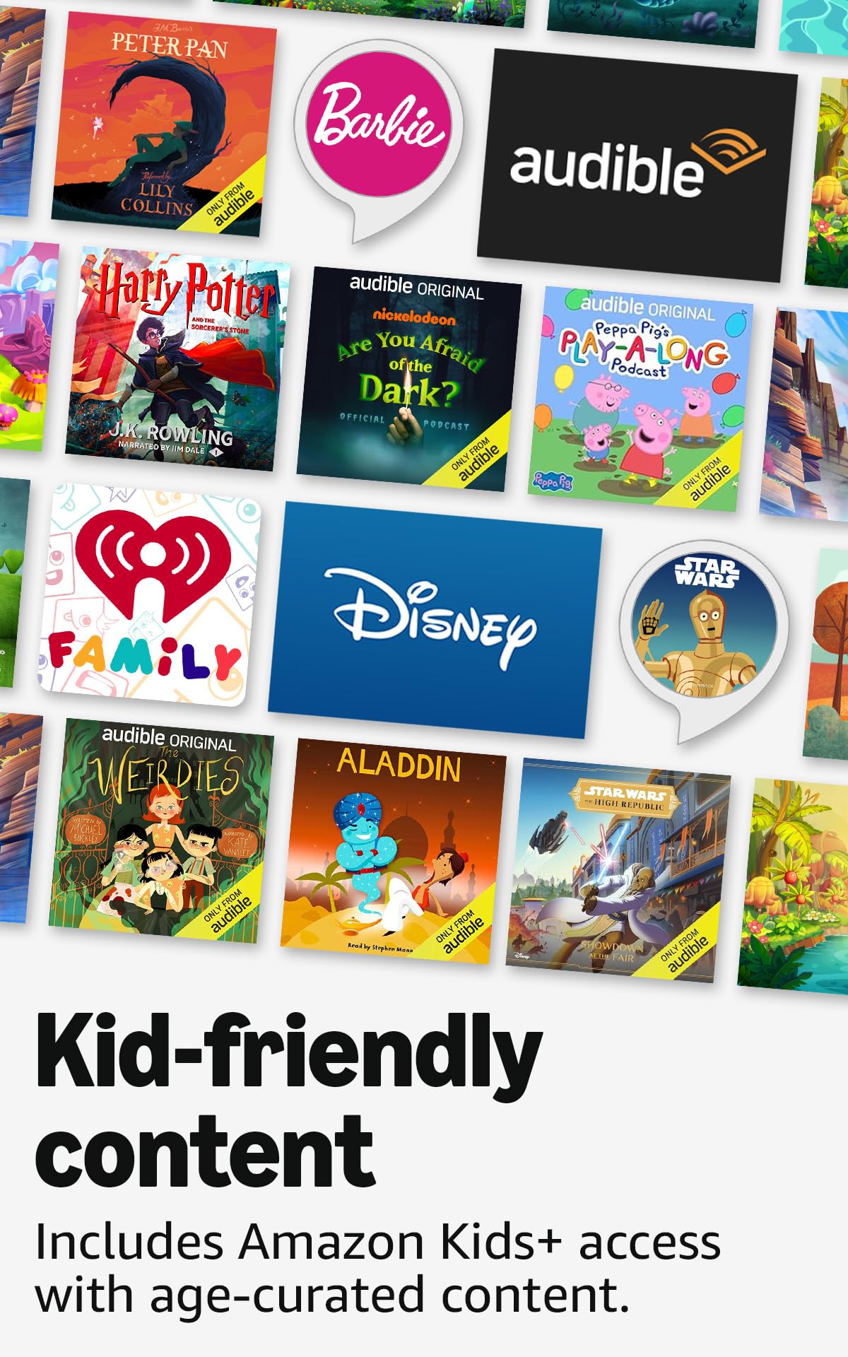 - Thousands of kid-friendly audiobooks: With Amazon Kids+, kids can listen to popular books from Disney, fiction classics from authors like Beverly Cleary, or kid-friendly non-fiction titles and biographies.