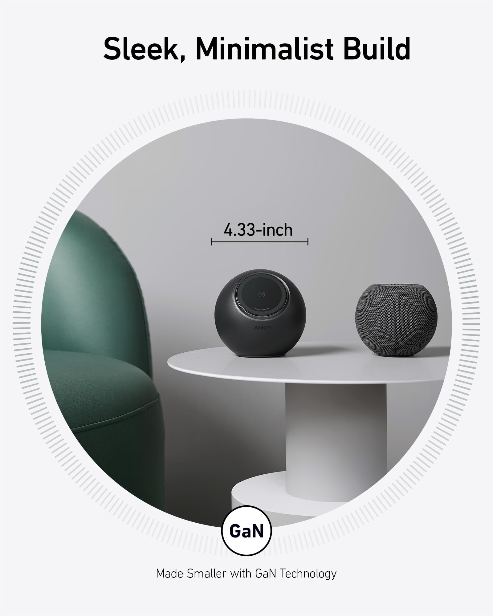 • Compact and Clutter-Free: Enjoy a streamlined setup with concealed rear outlets, ensuring a clean desktop and saving space with a size comparable to a HomePod Mini.