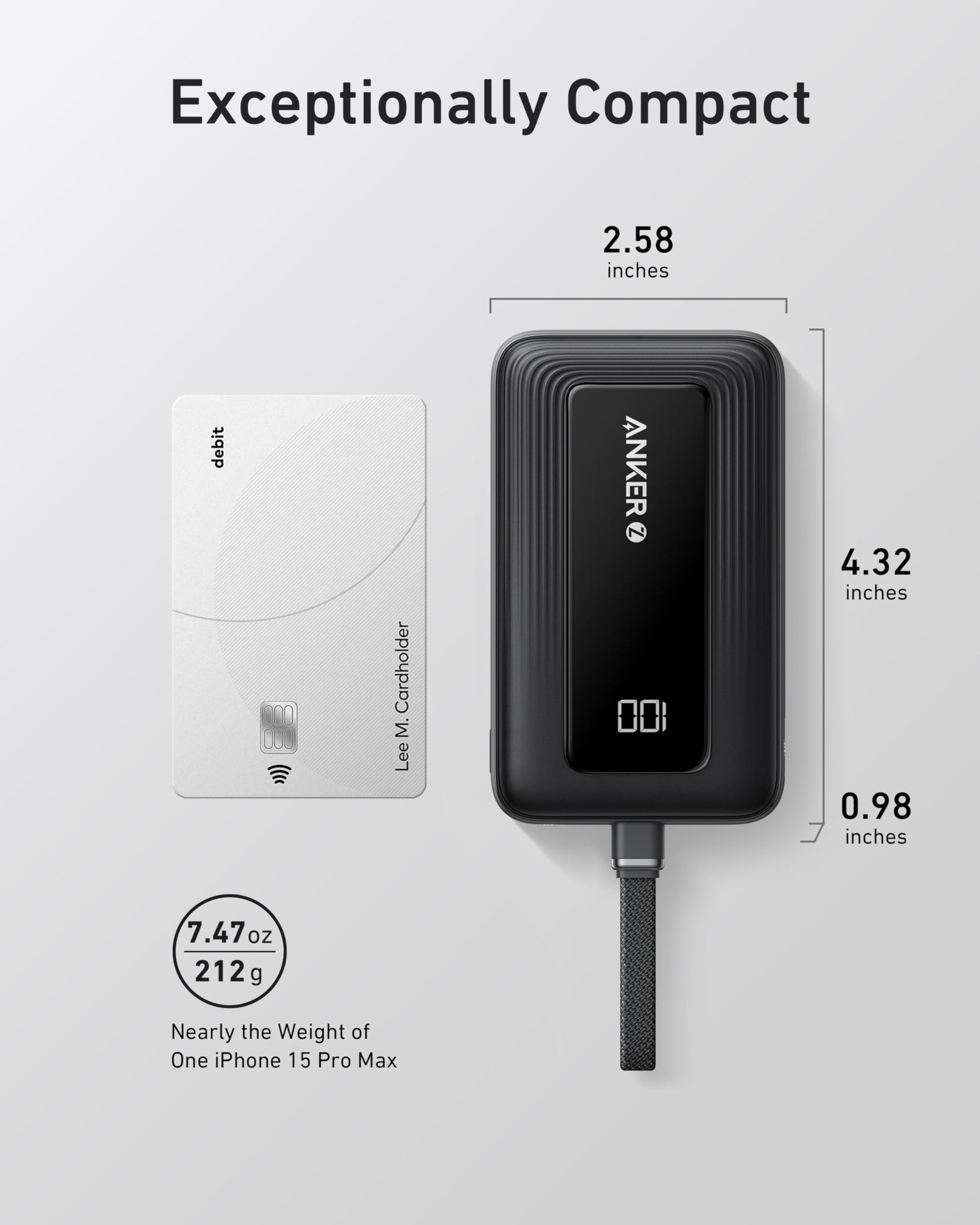 ANKER Portable Charger, 10,000mAh 30W Power Bank, USB-C in and Out Fast Charging Battery Pack, Travel Essential Phone Power Bank, for iPhone 16/15, iPad, MacBook, Galaxy, Google, and More