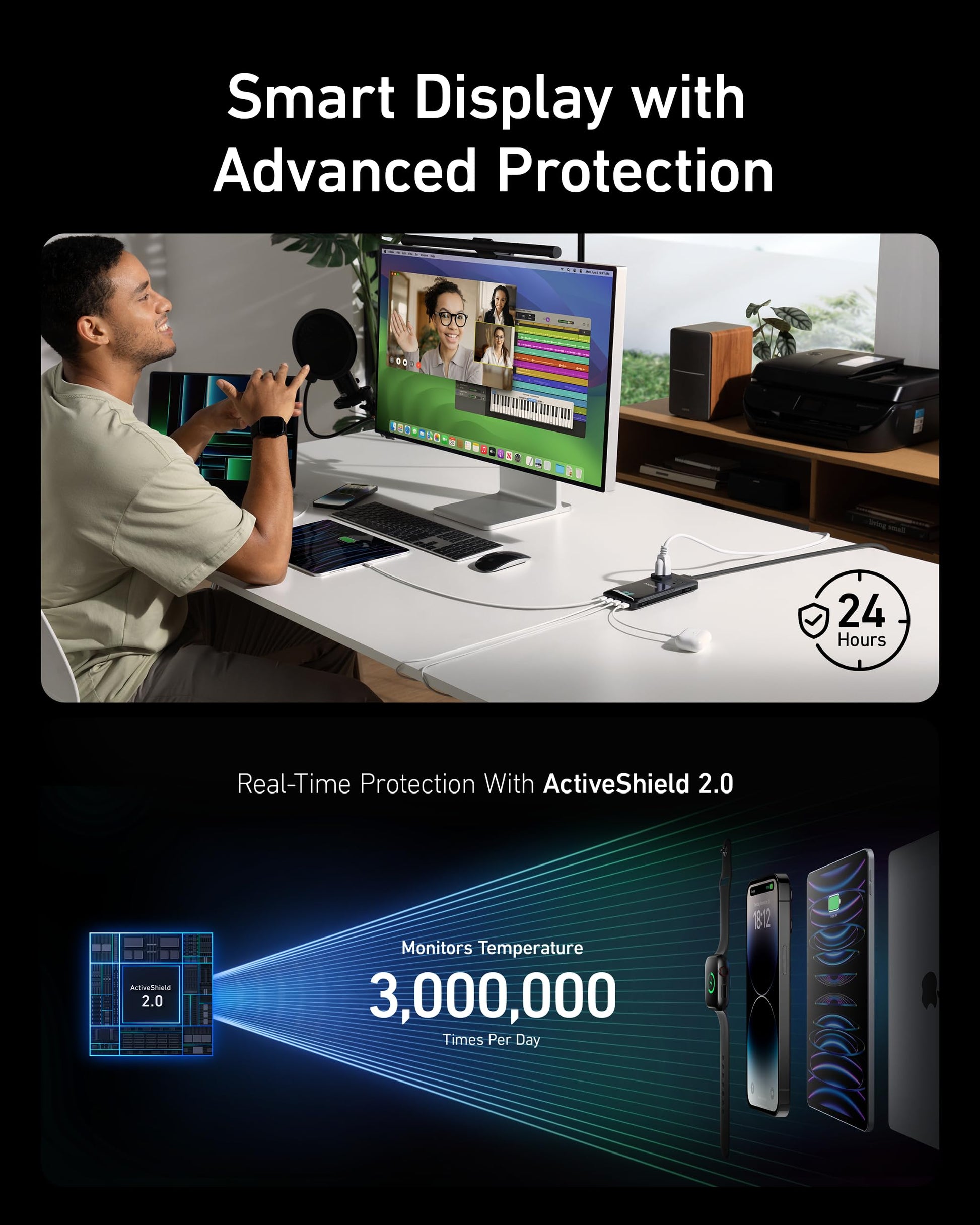 - Stay Informed and Protected: Monitor and protect your devices with the smart display's real-time data monitoring, while ActiveShield 2.0 technology offers up to 3 million daily checks for superior protection. Please note that the screen will only light up when the product is connected to the power supply.