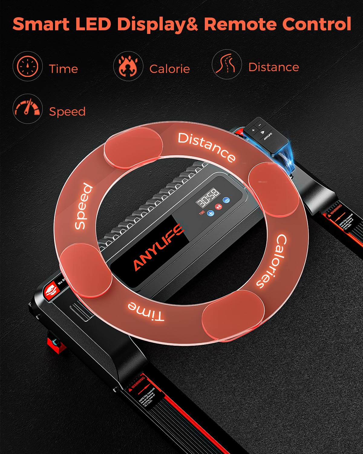 - ALL IN 1 TREADMILL: Anylife home treadmill have a speed range of 0.6-4.0mph, 0.6-1.5mph for walking, 1-2.5mph for jogging, and 3-4mph for running, satisfy your different exercise needs. Equipped with a remote control,change the running speed without having to bend down