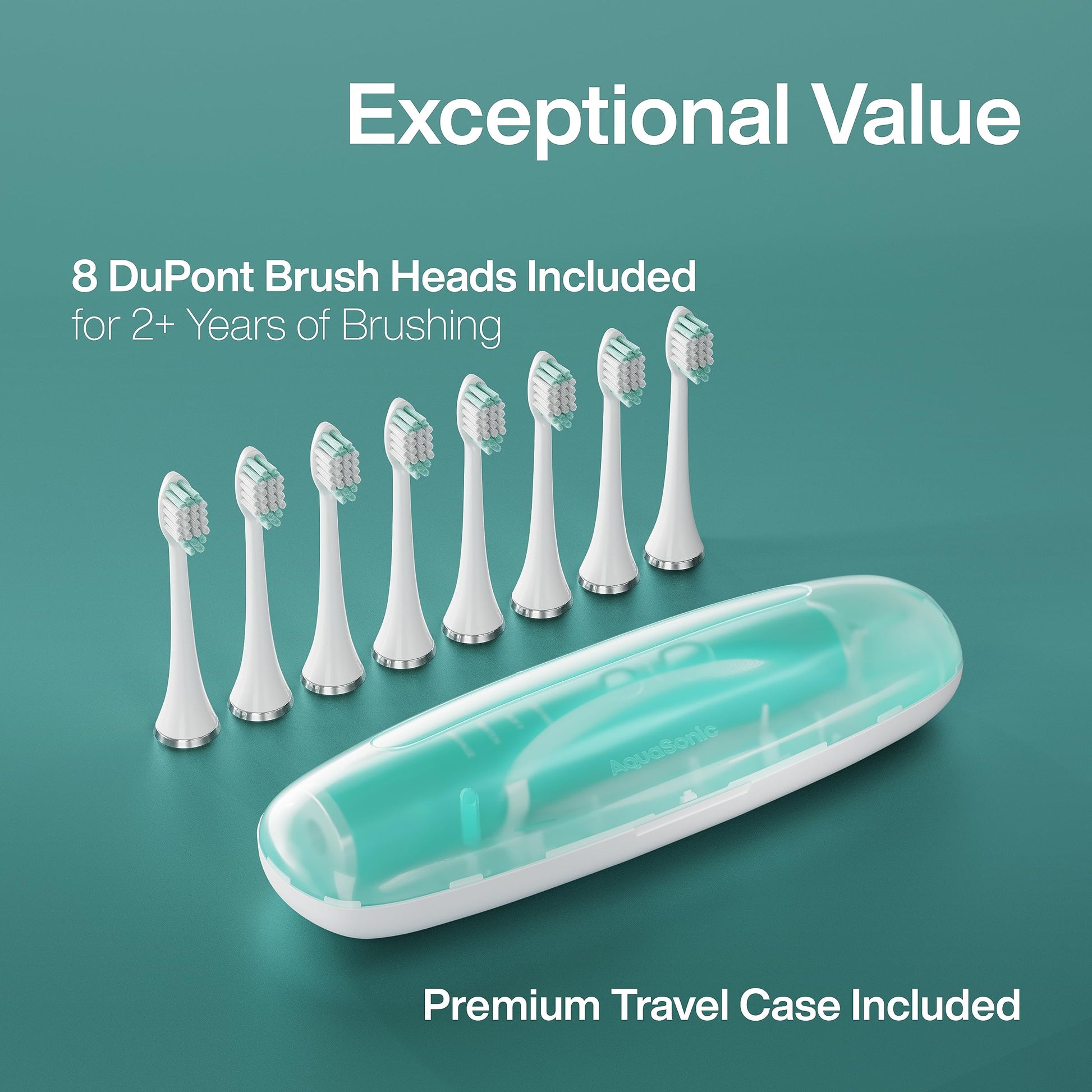 Aquasonic Vibe Series Ultra-Whitening Toothbrush – ADA Accepted Power Toothbrush - 8 Brush Heads & Travel Case – 40,000 VPM Motor & Wireless Charging - 4 Modes w Smart Timer – Mint Green Metallic