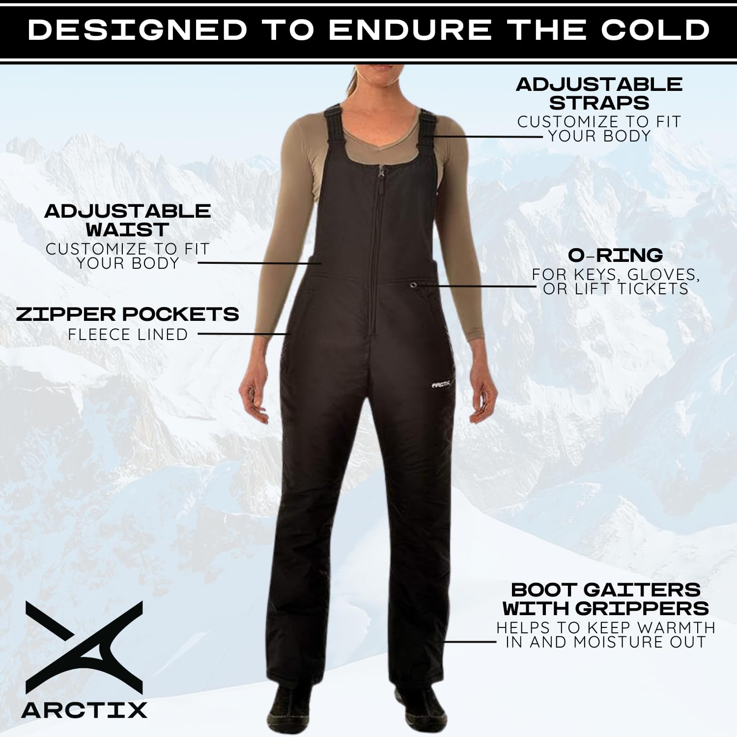 - ARCTIX ESSENTIALS: Stay warm and dry with the Arctix Women's Essential Insulated Ski Bibs. These durable, water resistant snow bibs for women offer all-weather protection, lightweight insulation, and a customizable fit to keep you comfortable in the cold.