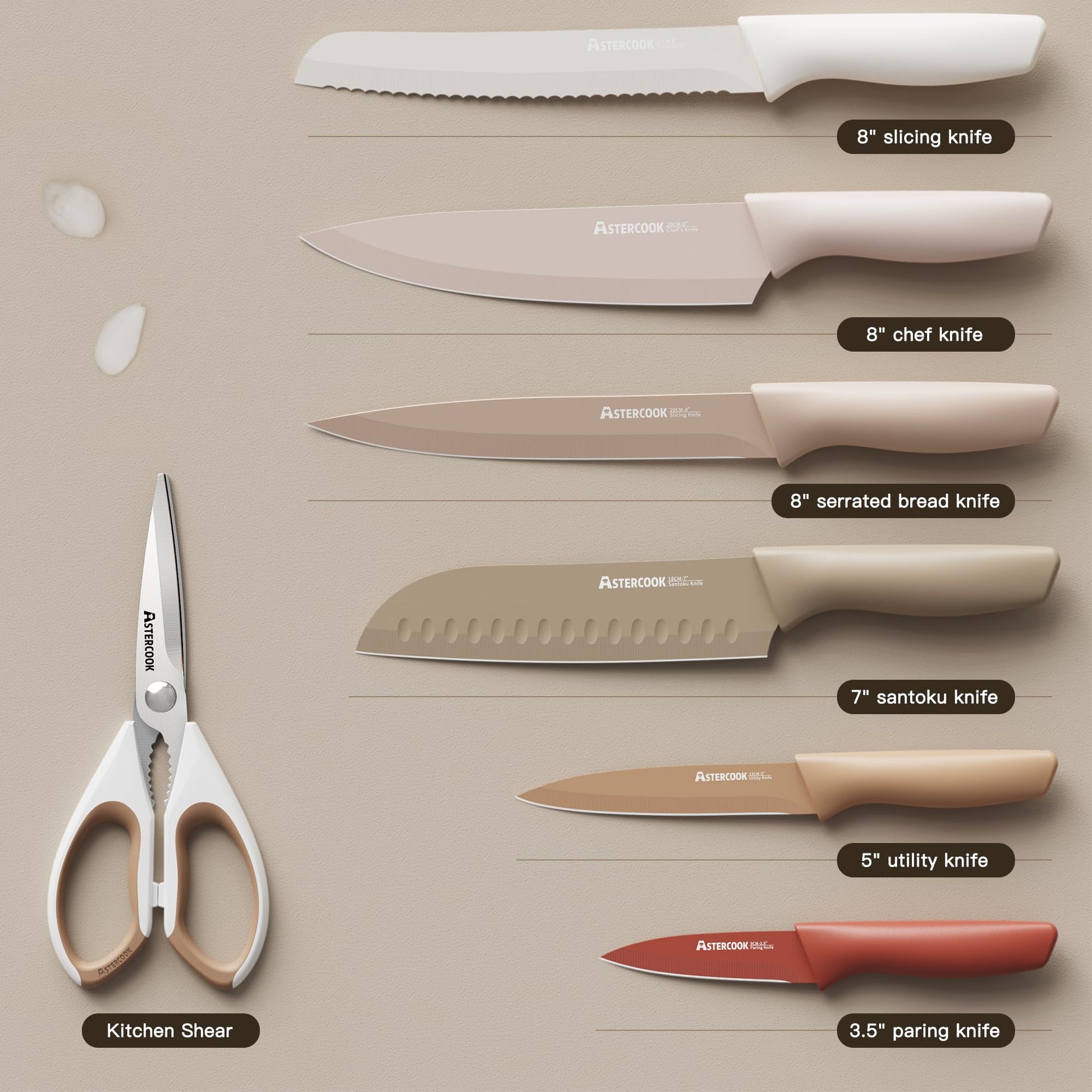 Astercook Knife Set, 13 Pieces Kitchen Knives Set with Healthy Anti-Rust Coating, Dishwasher Safe, Stainless Steel Chef Knife Sets with 6 Blade Guards, Perfect Holiday Gifts for Kitchen