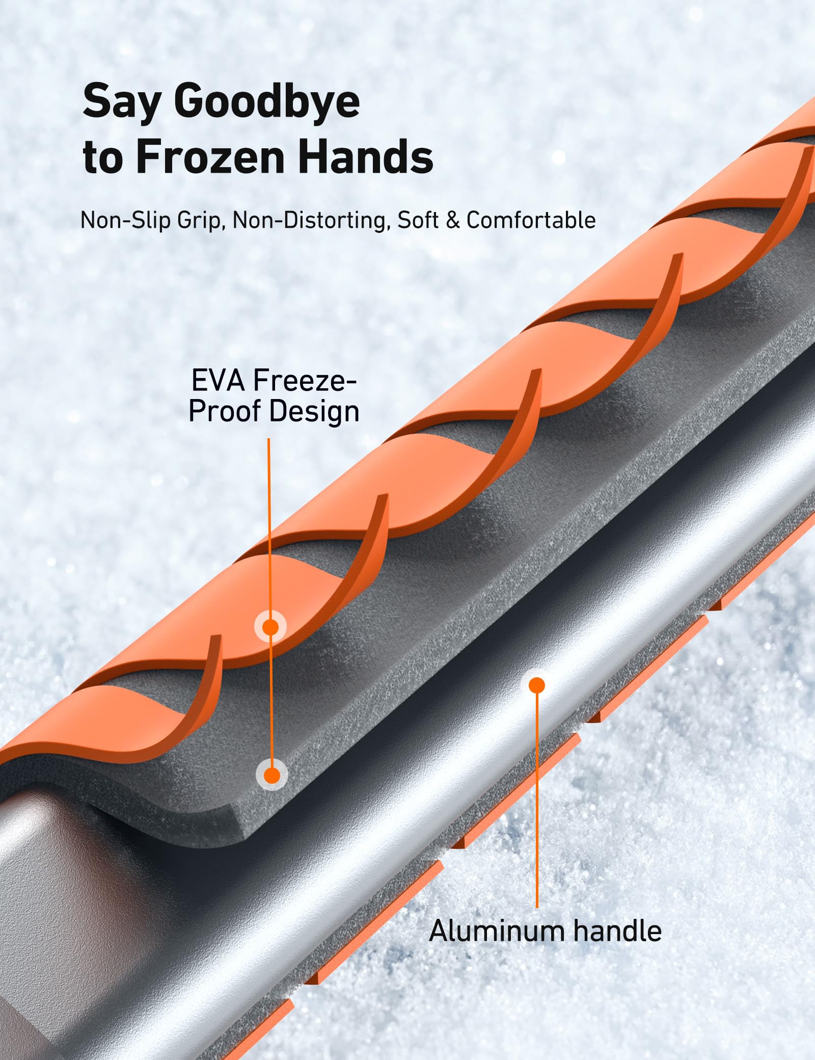 - Ergonomic Freeze-Proof EVA Grip: The EVA handle ensures an effortless snow-shoveling experience. Its ergonomic design provides an anti-slip grip, making it comfortable to hold while preventing your hands from getting cold