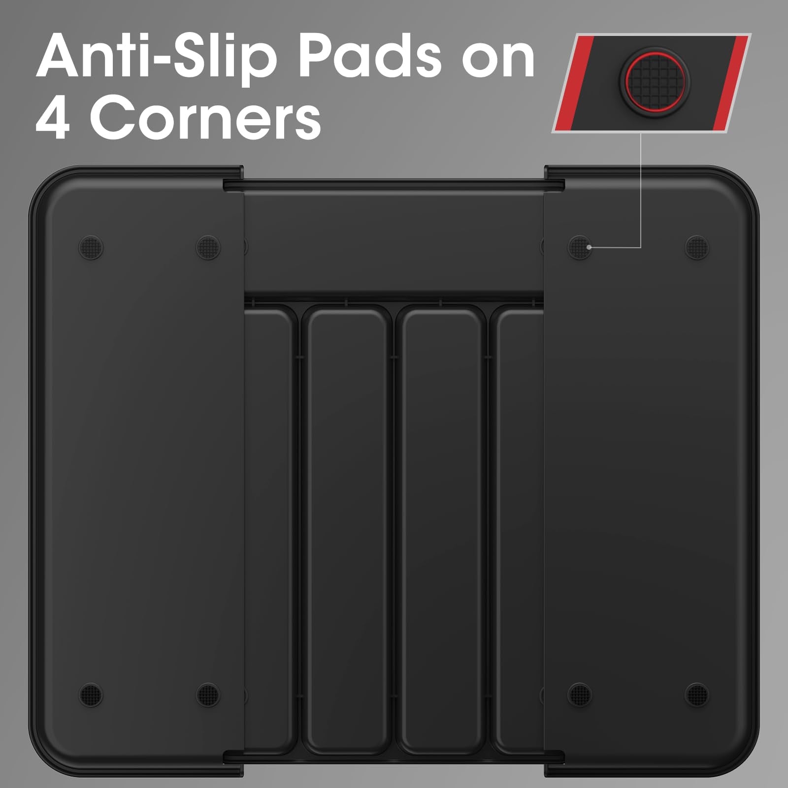 - CONSIDERATE DESIGNS: Anti-sliding pads on all four corners keep items securely in place, preventing any unwanted sliding under the dividers. The buckle design allows smooth sliding and easy adjustment while preventing the dividers run off the rails. Enjoy a seamlessly organized experience with AUJEN utensil holders!
