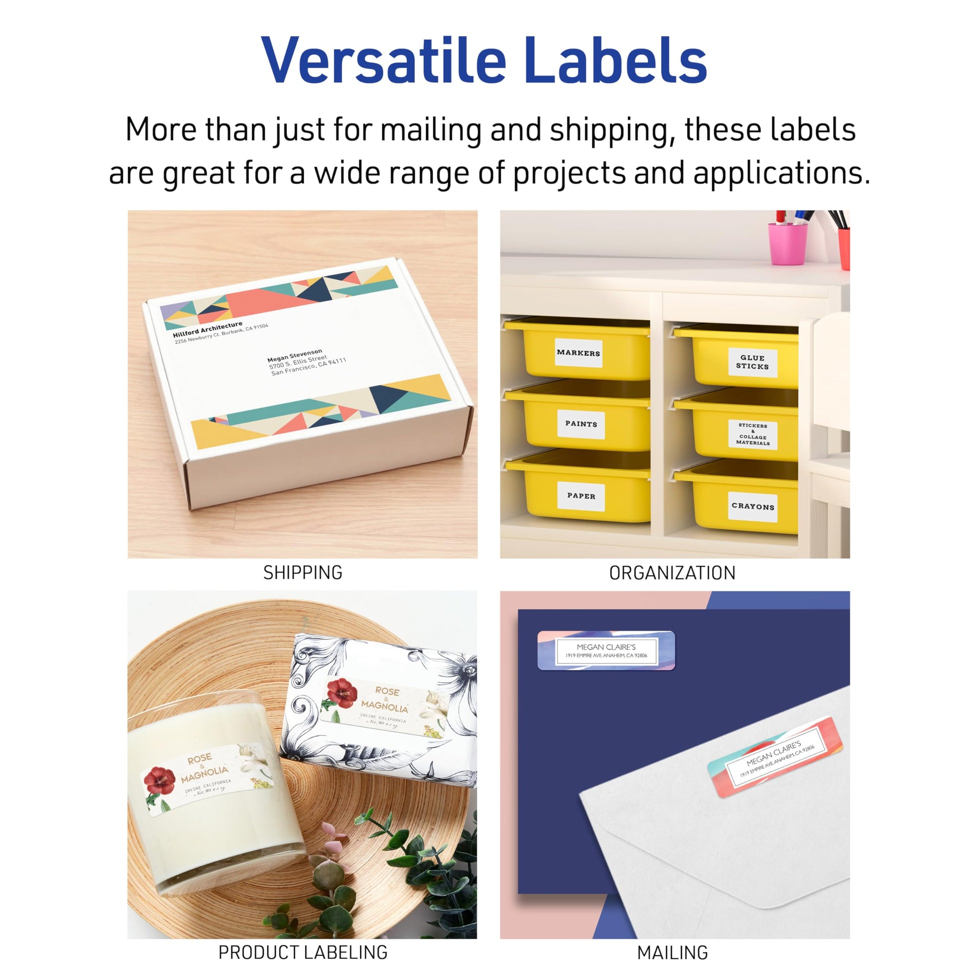 - This bulk pack of versatile rectangle labels is great for high-volume mailing and shipping, product labels, organization, identification, and more