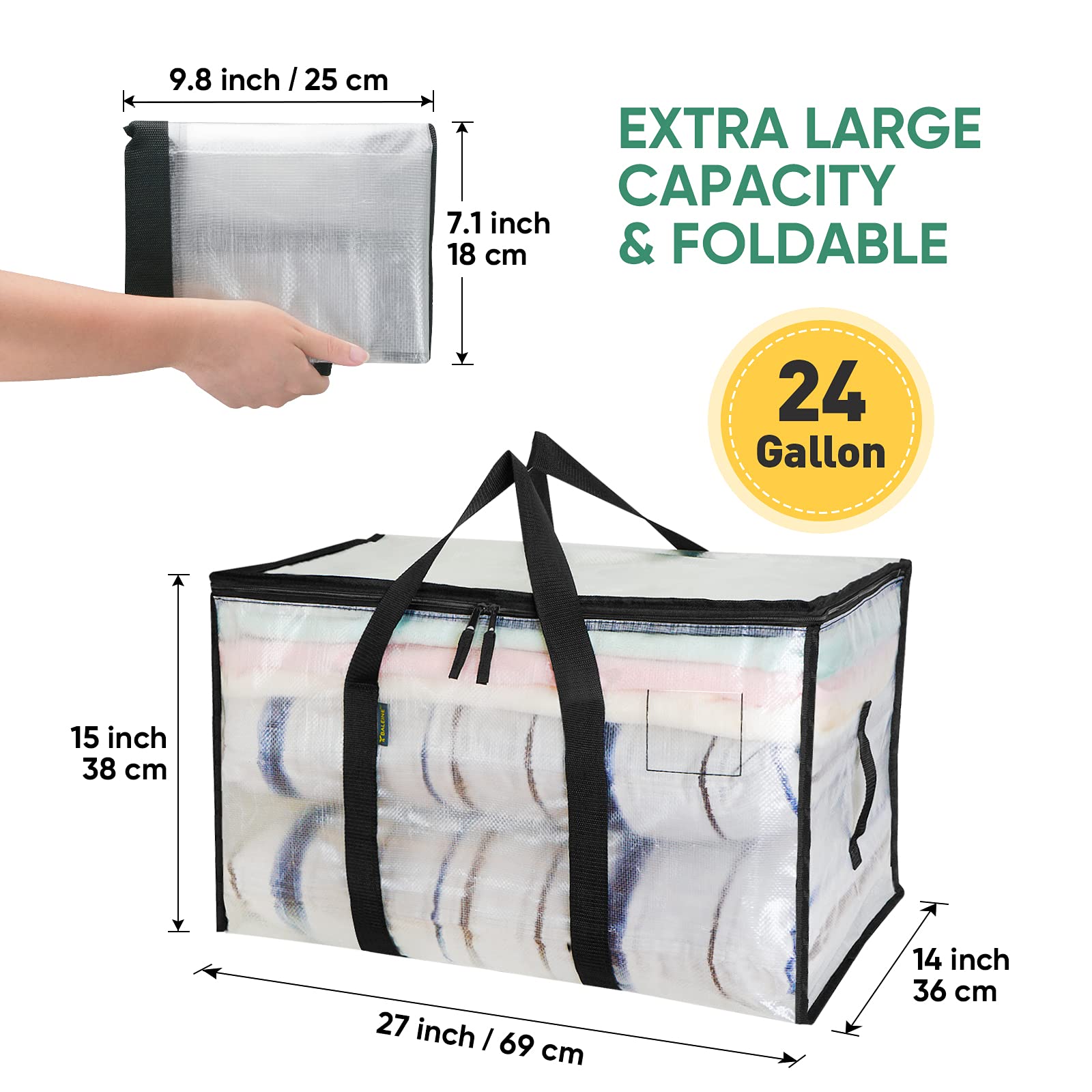 • [✔️HEAVY DUTY & OVERSIZED] The extra large storage bags are 27'' x 15'' x 14'' that provide a 24 Gallon storage volume. The load capacity of each storage bags is 50 lb. The carrying handles are designed to surround the plstic tote to hold heavier loading than stitched handles.