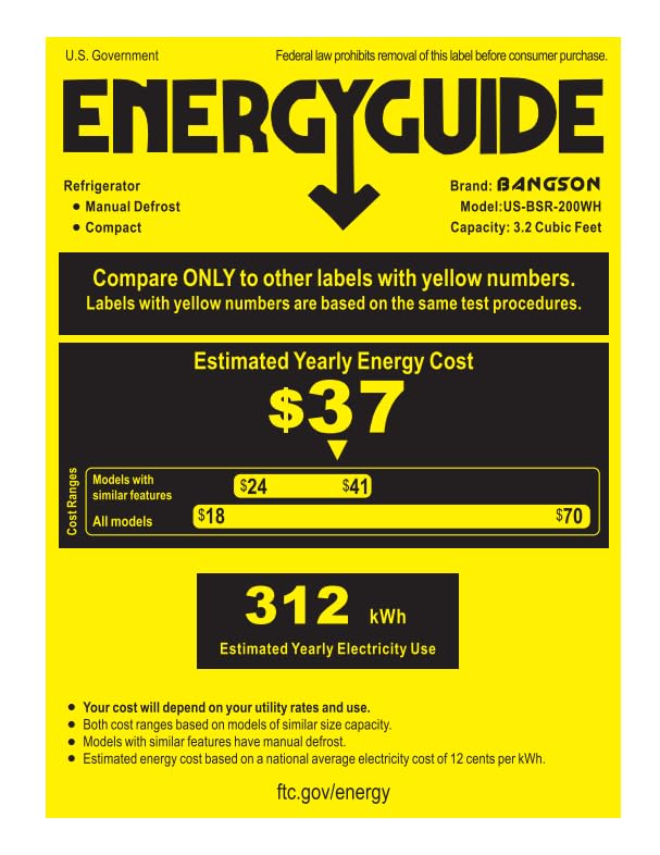 - Adjustable Temperature:Bangson mini freezer fridge combo contains five temperature settings, ranging from 33.8'F to 46.4'F in the 2.26 cu.ft freezing compartment and from -0.4'F to -18 0'F in the 0.95 cu.ft frozen compartment. 1 is the warmest, 5 is the coldest