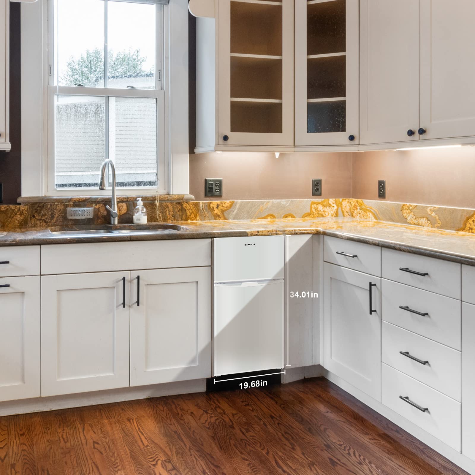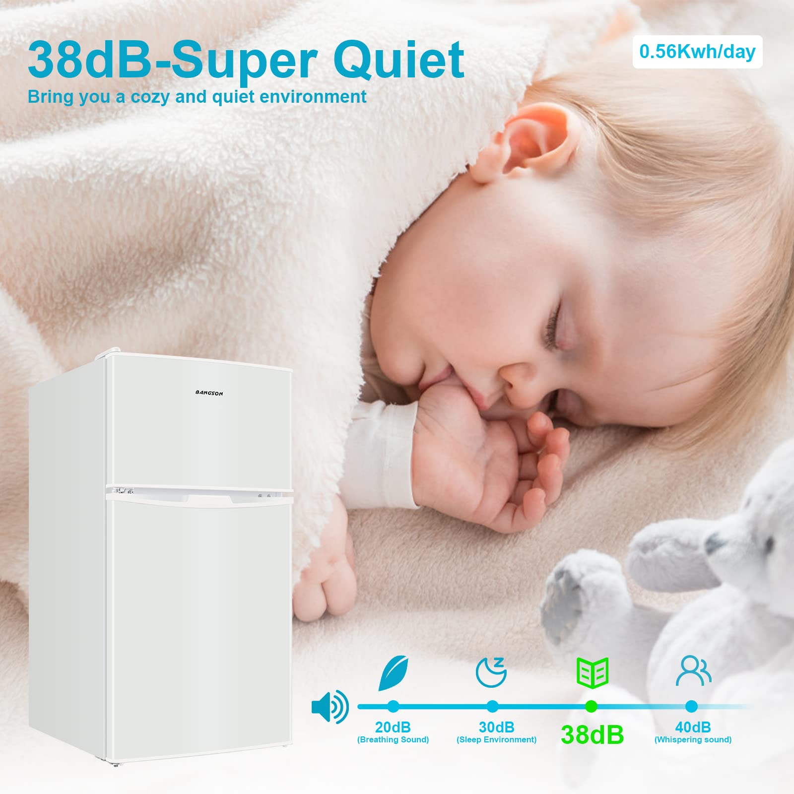 BANGSON Mini Fridge with Freezer, 2 Door Small Refrigerator with Freezer, Mini Fridge for Bedroom, 3.2 CU.FT, For Home, Office, Dorm, Garage or RV, (White)