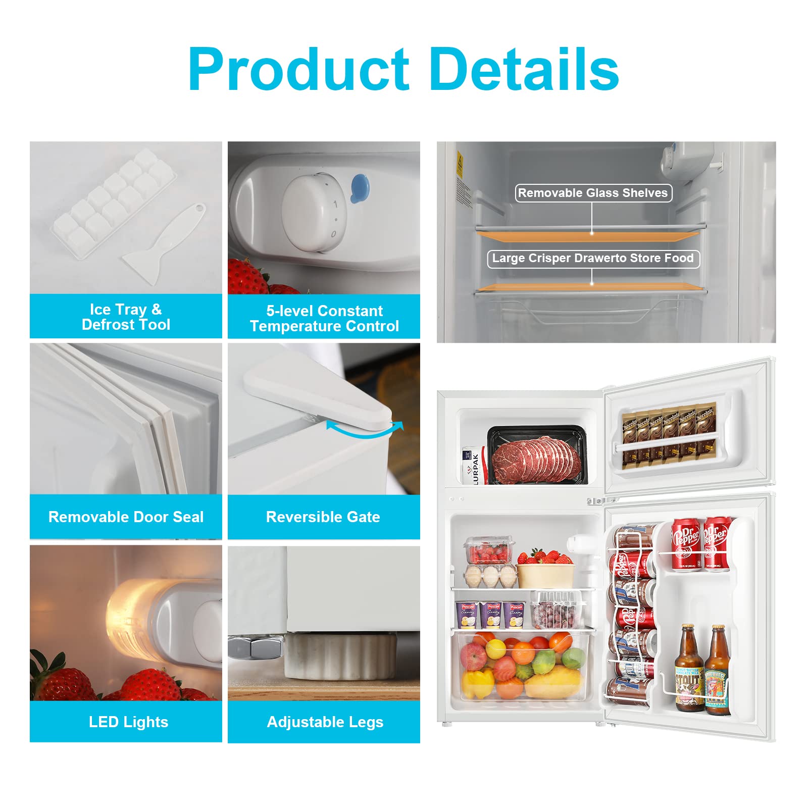 - Space Saving & Large Capacity:This small refrigerator with freezer measures 17.9"*18.9"*33.1"(W*D*H) and has a capacity of 3.2 cubic feet. The large capacity and separate storage provide freshness to your favorite beverages, fruits, or vegetables. A cool drink is always there for you after a busy day