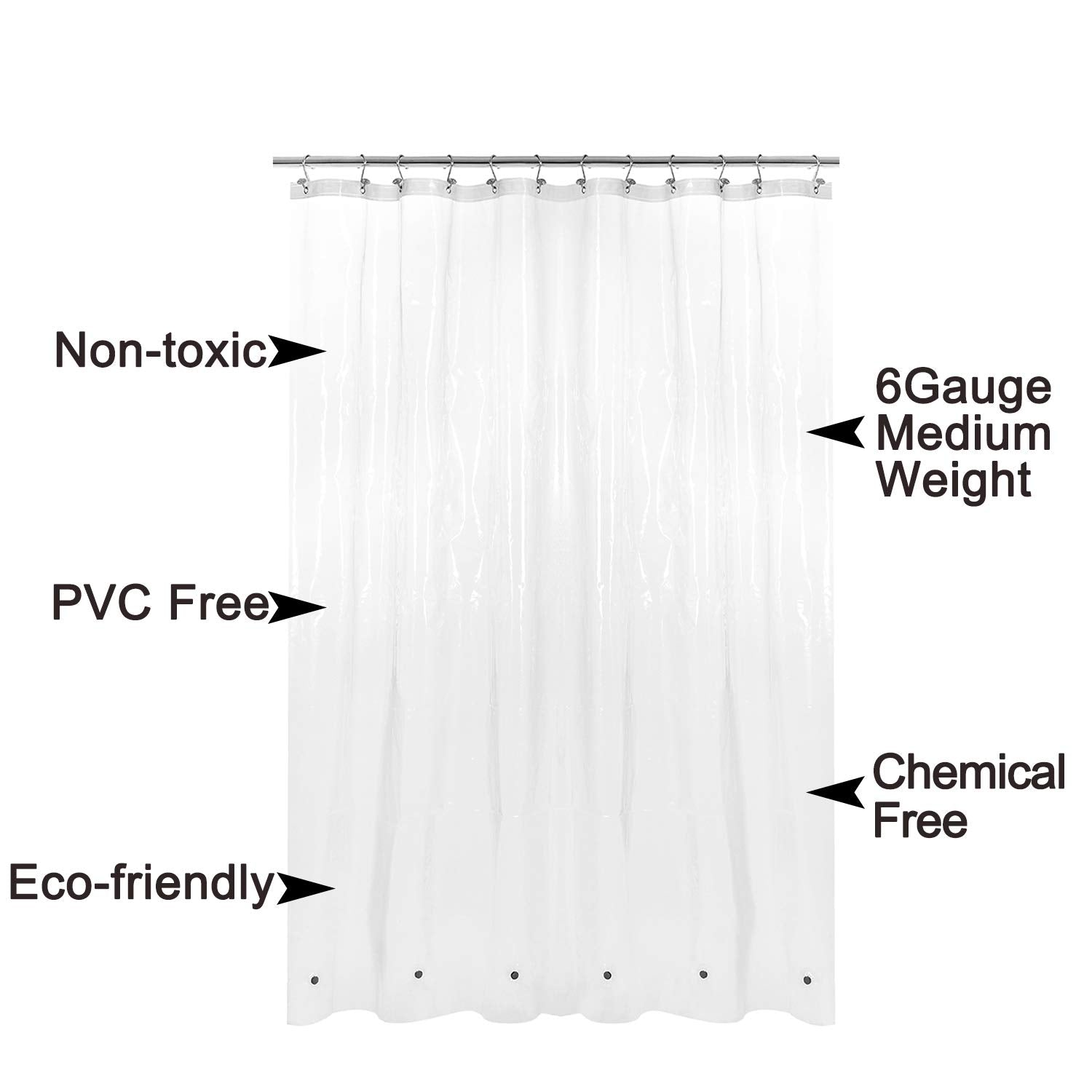 • Premium PEVA: Made of 8G heavy duty PEVA material. This 72x75 length shower curtain liner is no chemical odor, PVC-free and BPA-free