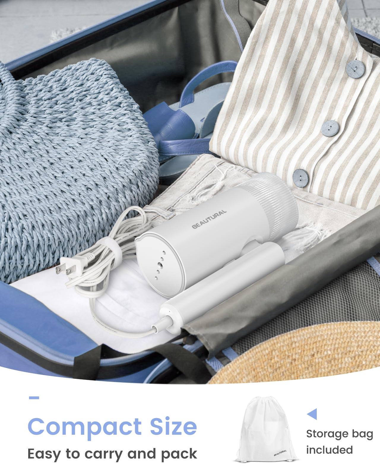 BEAUTURAL Steamer for Clothes, Portable Garment Wrinkle Remover, Fast 30s Heat-up, Foldable and Handheld, 120V Only (Not for 220V Europe)