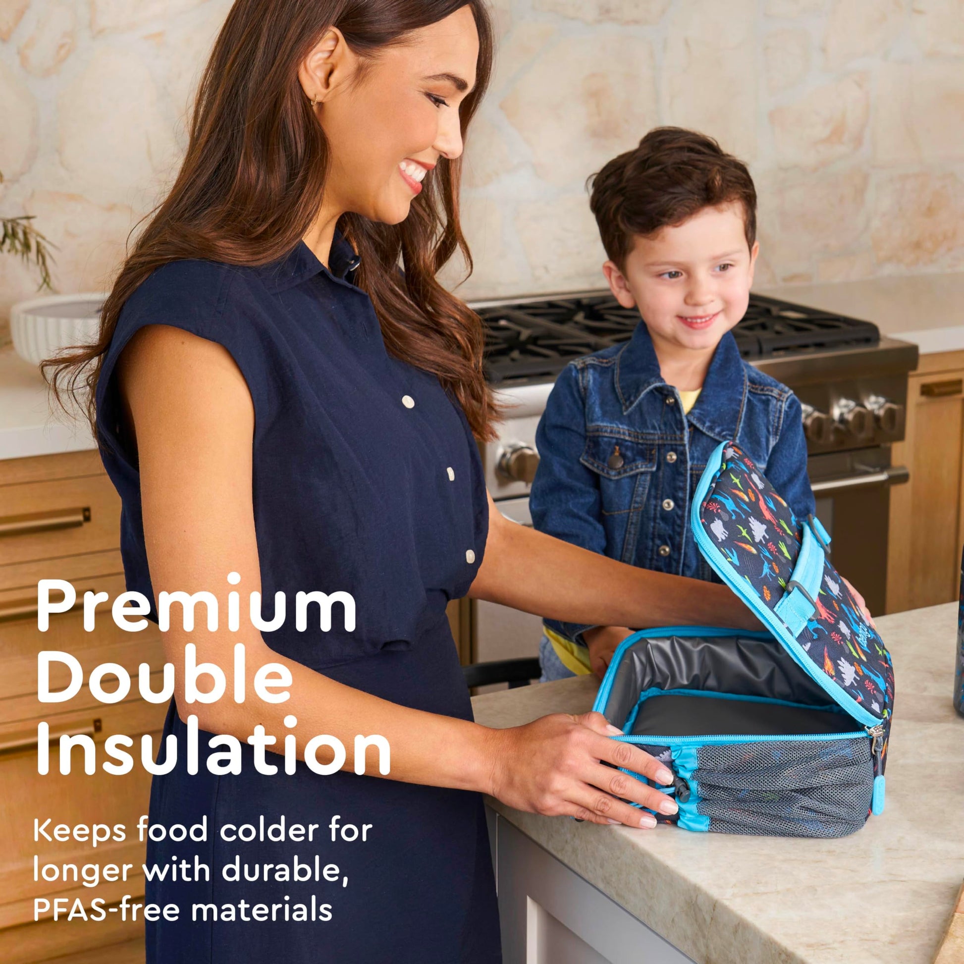 Bentgo Kids Lunch Bag - Double-Insulated, Reusable Lunch Bag for Kids 3+ with Adjustable Strap; Holds Lunch Box/Water Bottle/Snacks; Easy-Clean, Water-Resistant & Pockets (Dinosaur)