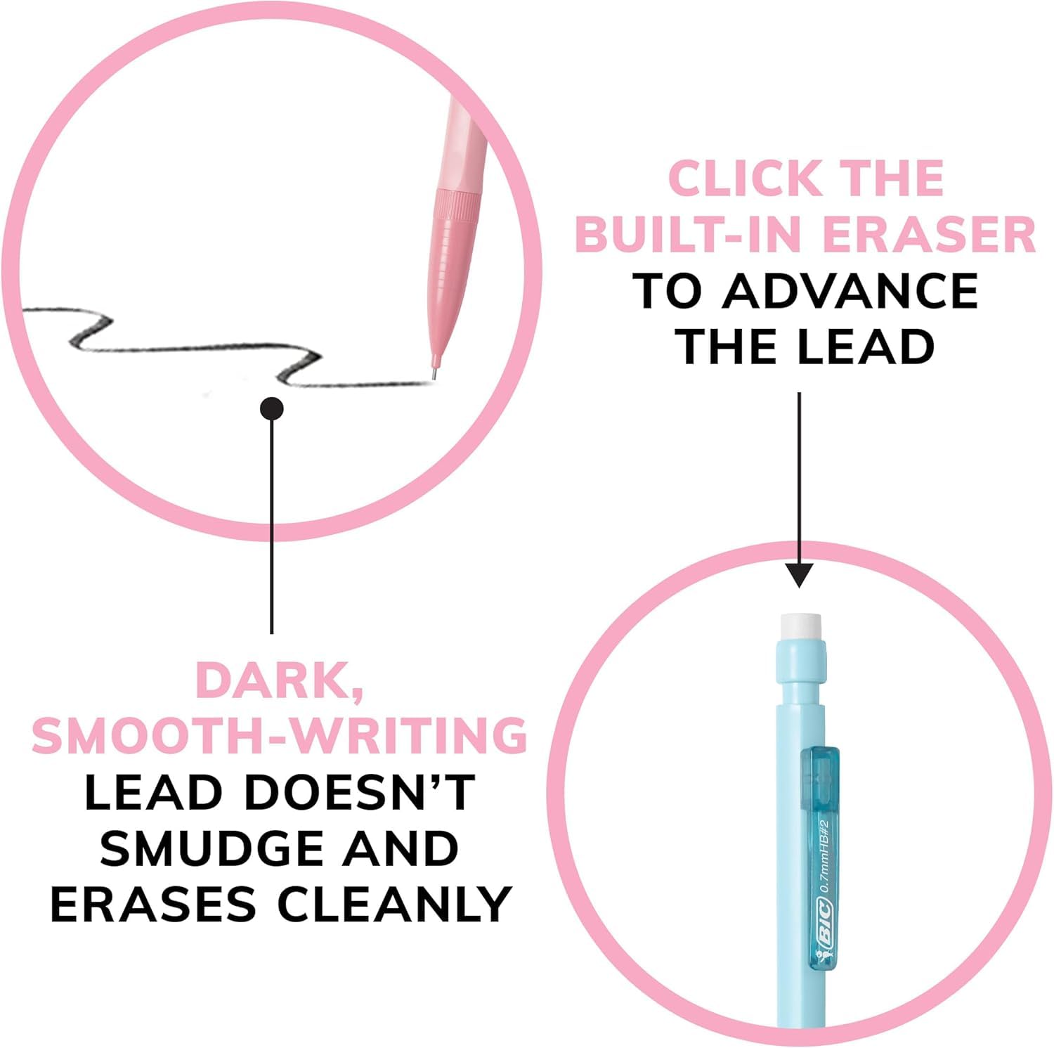 Details: BIC Xtra Smooth Mechanical Pencils offer reliable performance for all your school supplies needs. With a 0.7 mm medium point, these pencils provide smooth, dark writing that doesn't smudge and erases cleanly. These pencils are refillable, ensuring long-lasting use and convenience. As the No. 1 selling mechanical pencil brand in the United States*, BIC pencils are trusted for their quality and affordability. The colorful clips easily attach to notebooks, making them a versatile addition to your office supplies. Perfect for standardized tests, these pencils #2 are a staple for students. Ideal for those wondering where to buy school supplies, this 40-count pack keeps you stocked for the school year. *Source: The NPD Group/Retail Tracking Service and Commercial Tracking Service, U.S., based on actual unit sales, 12ME February 2025 combined.