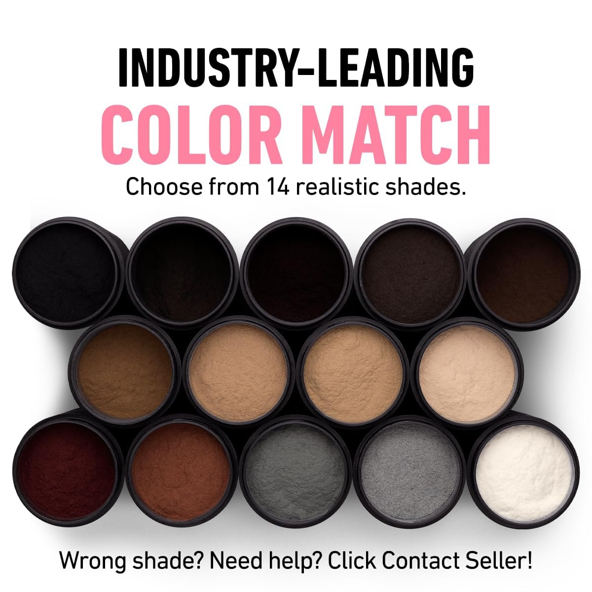 - PERFECT COLOR MATCH, GUARANTEED: Choose from 14 shades to match your hair starting at the roots, where color accuracy is crucial. Unsure between two shades? Opt for the darker one for a natural look. Avoid lighter fibers to prevent an undesirable finish. Wrong shade? Don’t contact Amazon—click "Contact Seller" or scan QR code in packaging for support from our dedicated Customer Care Team!