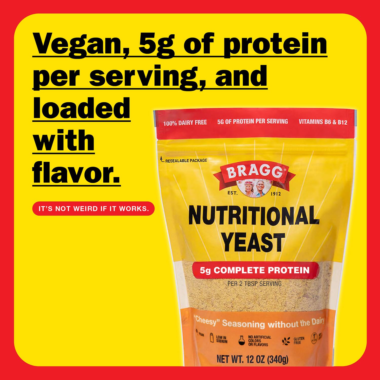 Bragg Premium Nutritional Yeast Seasoning - Vegan, Gluten Free – Good Source of Protein & Vitamins – Nutritious Savory Parmesan Cheese Substitute (Original, 12 Ounce (Pack of 1))