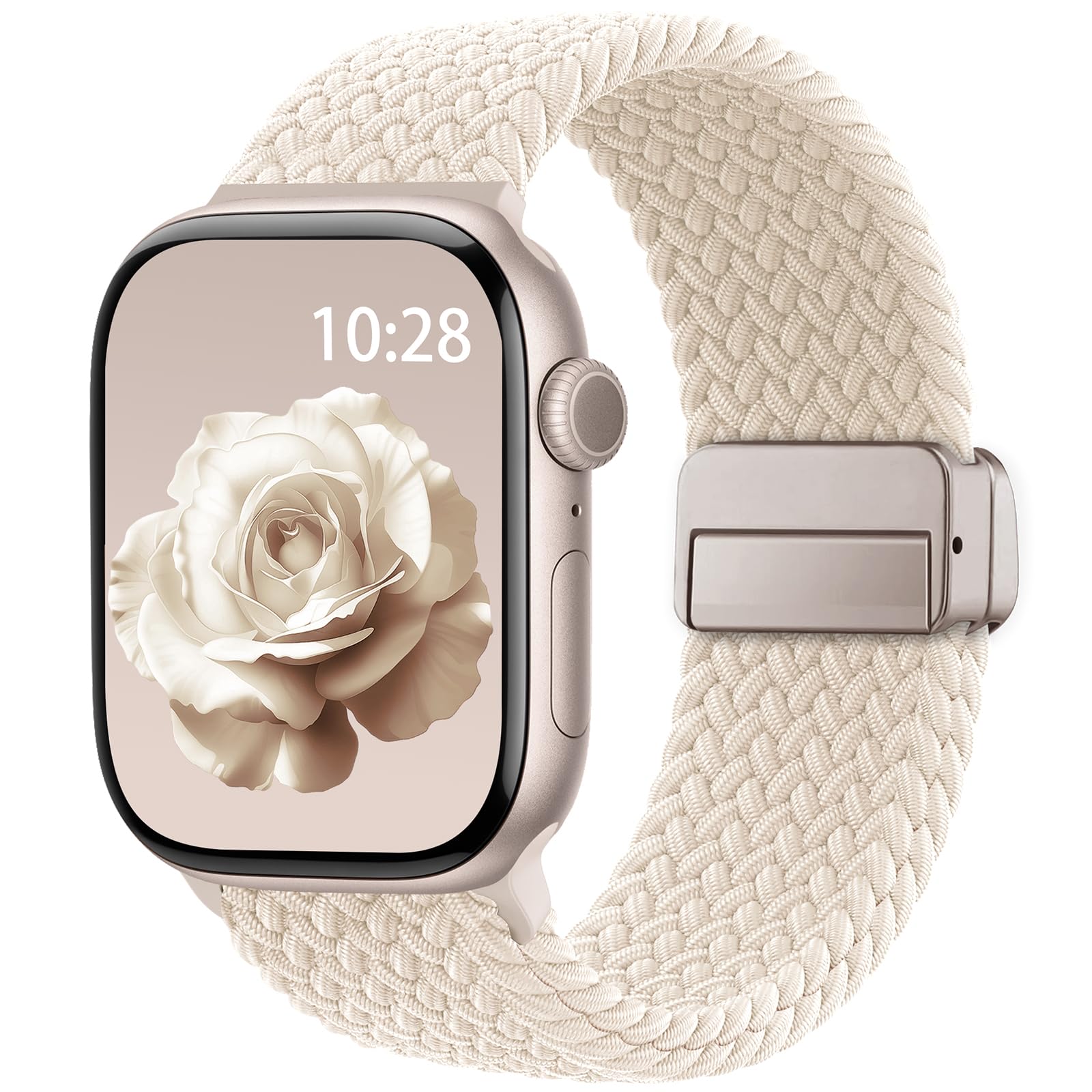 Braided Stretchy Band Compatible with Apple Watch Bands 38mm 40mm 41mm 42mm 44mm 45mm 46mm 49mm Women Men, Soft Nylon Solo Loop Magnetic Sport Strap for iWatch Series 10 9 8 7 6 5 4 3 2 1 SE Ultra