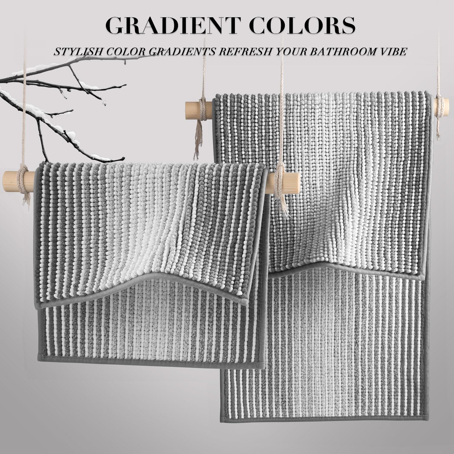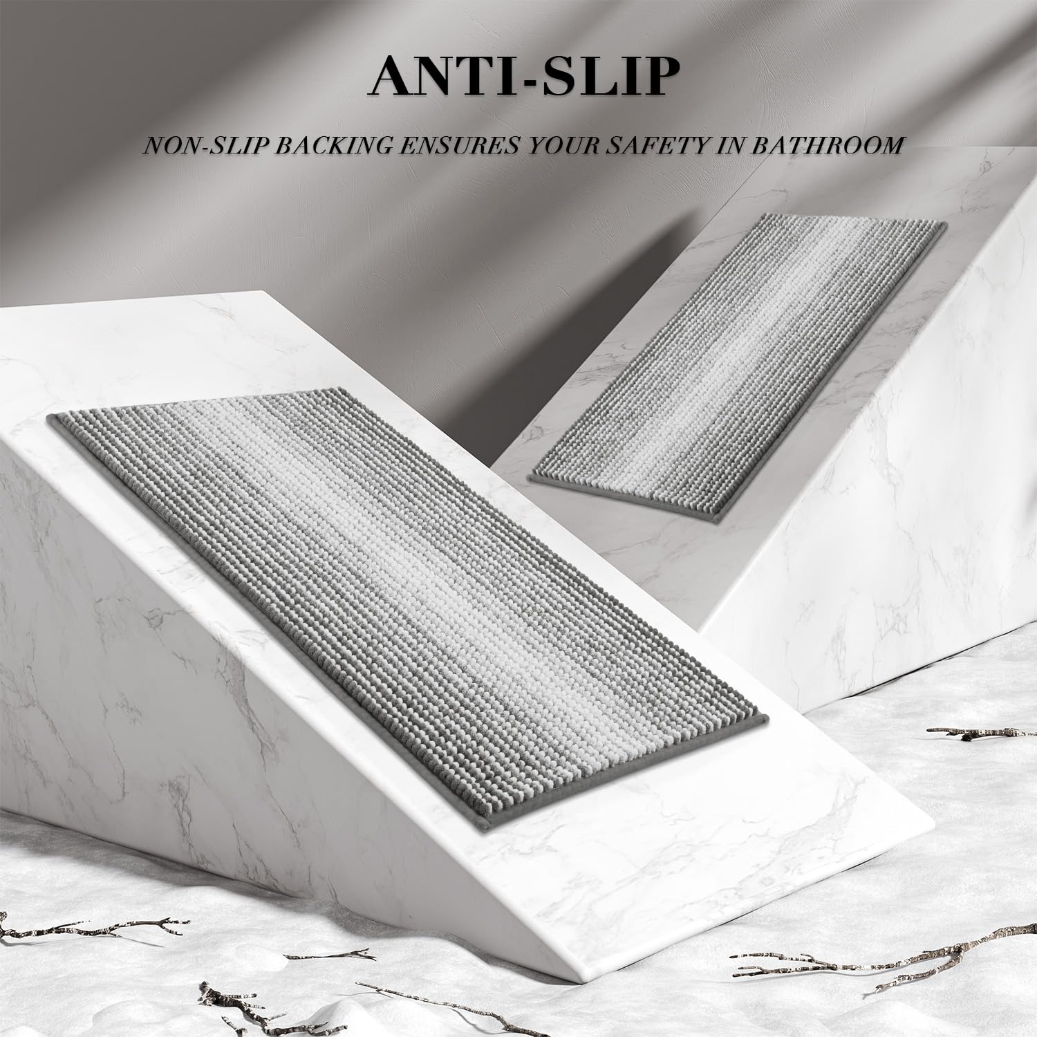 - 【EXTRA ABSORBENT BATHROOM RUG】: The luxury performance chenille microfibers can quickly absorb moisture from your feet when you step out of the bath or shower, and save your floors from dripping water, and dries quickly, making your feet feel the ultimate luxury enjoyment