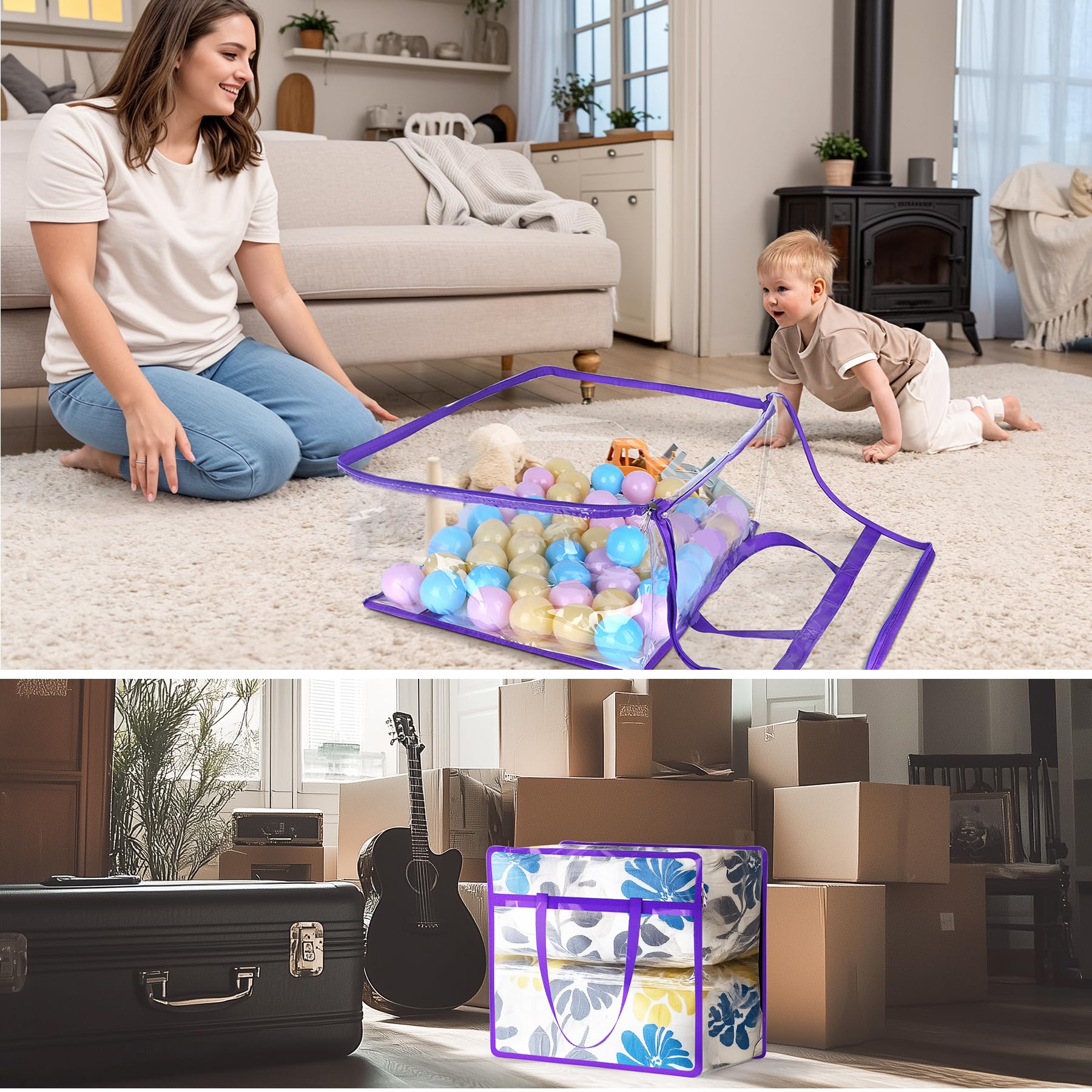 Budding Joy 6 Pack Clear Zippered Storage Bags for Clothes,40L Closet Organizers and Storage Containers Vinyl Moving Bag for Bedding, Linen, Blankets, Comforters, Clothing & Toys