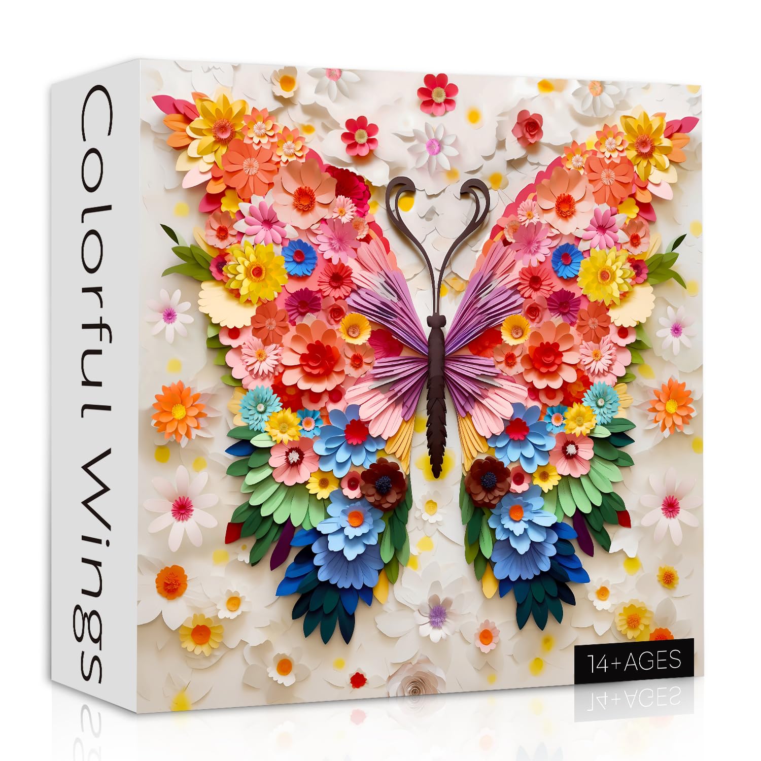 - Colorful Paper Art Puzzle: The puzzle depicts a large butterfly made of colorful flowers, with symmetrical wings and delicate feathers. The perfect combination of paper cutting craftsmanship with colorful petals, gradient effects and gold embellishments presents delicate and intricate details, making it lifelike