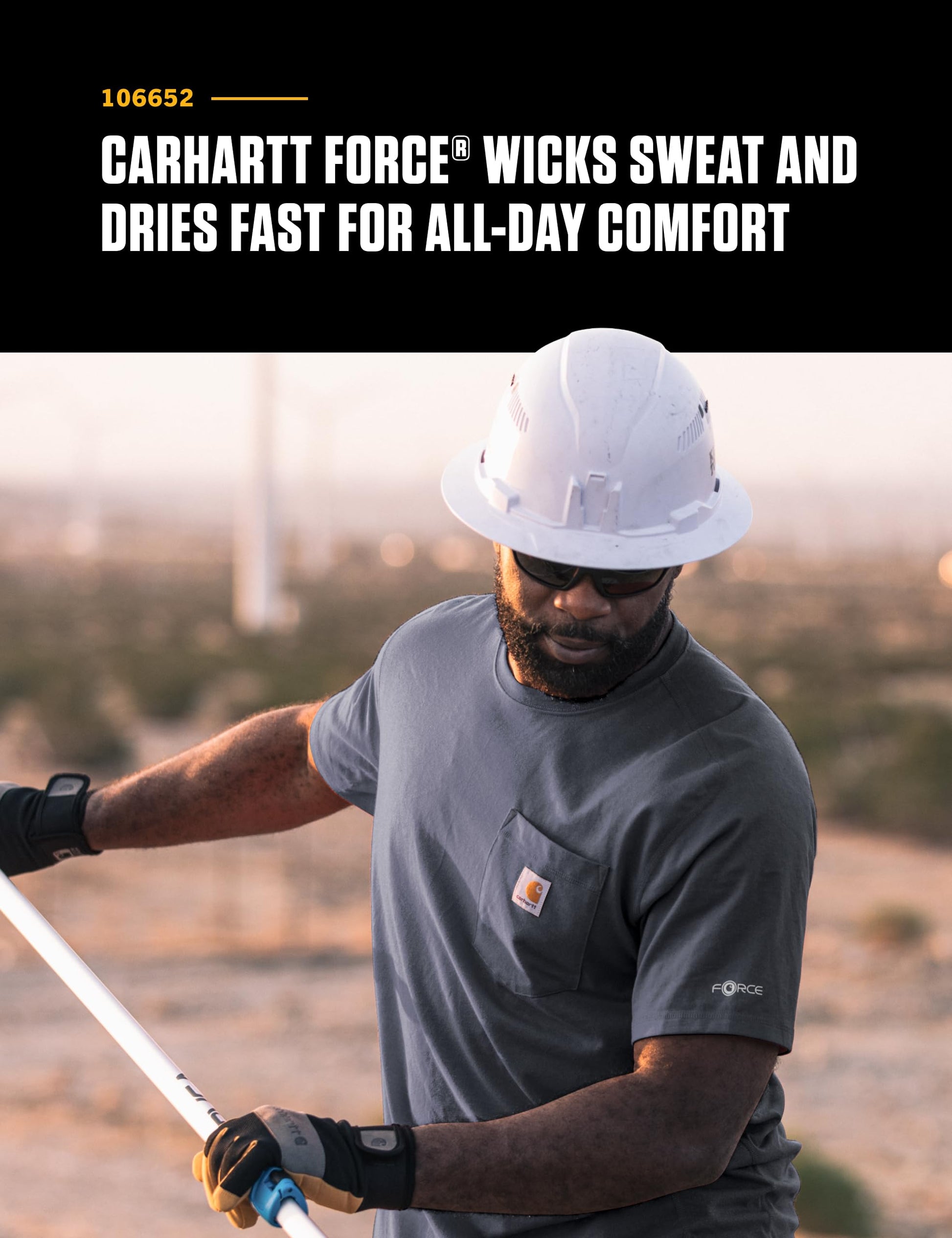 On the job or under the sun, this men's Carhartt t-shirt keeps you cool and comfortable. UPF-rated jersey fights off sweat and dries fast so you can stay focused on the task at hand. Ventilated panels keep the air circulating, and a drop-tail hem provides extra coverage.