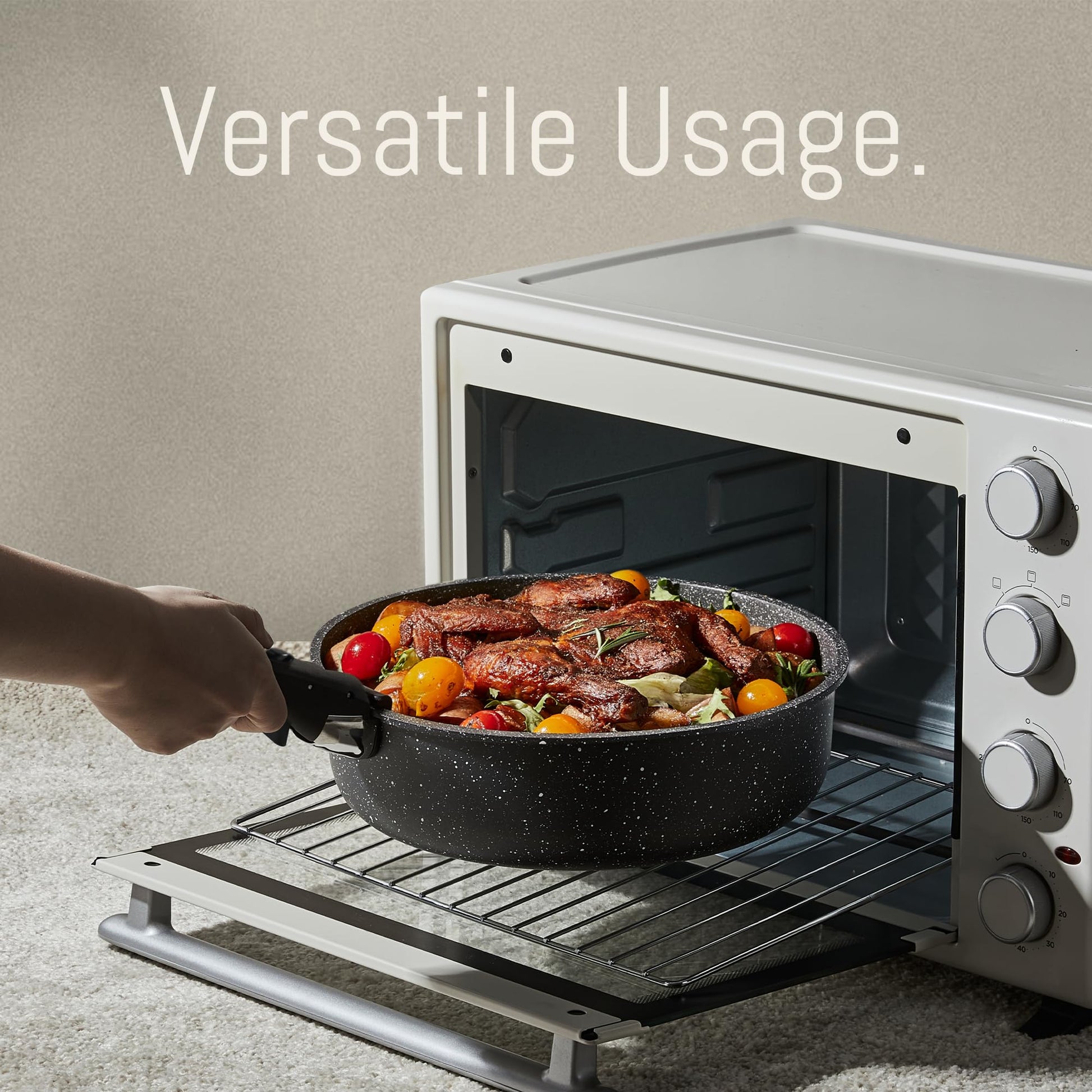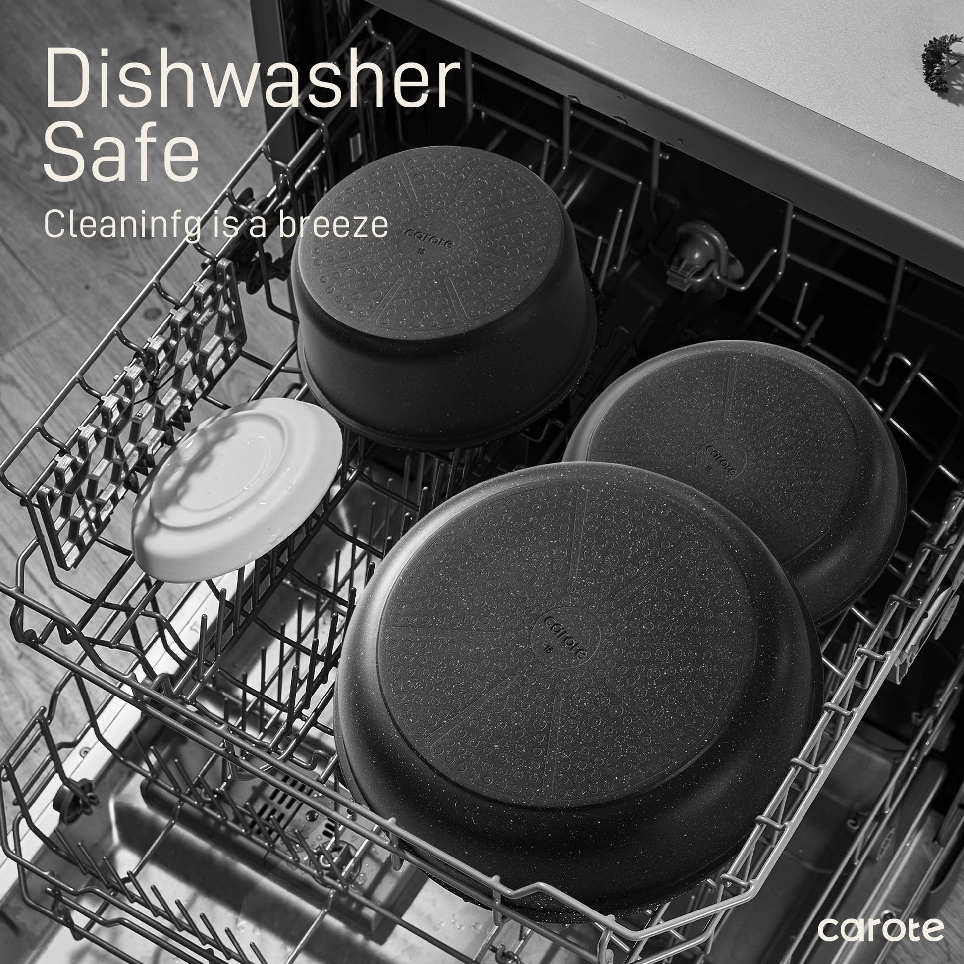 • Balanced convenience-rich features, rapid & even heat transfer, and nonstick performance as the same as other Carote cookware sets.