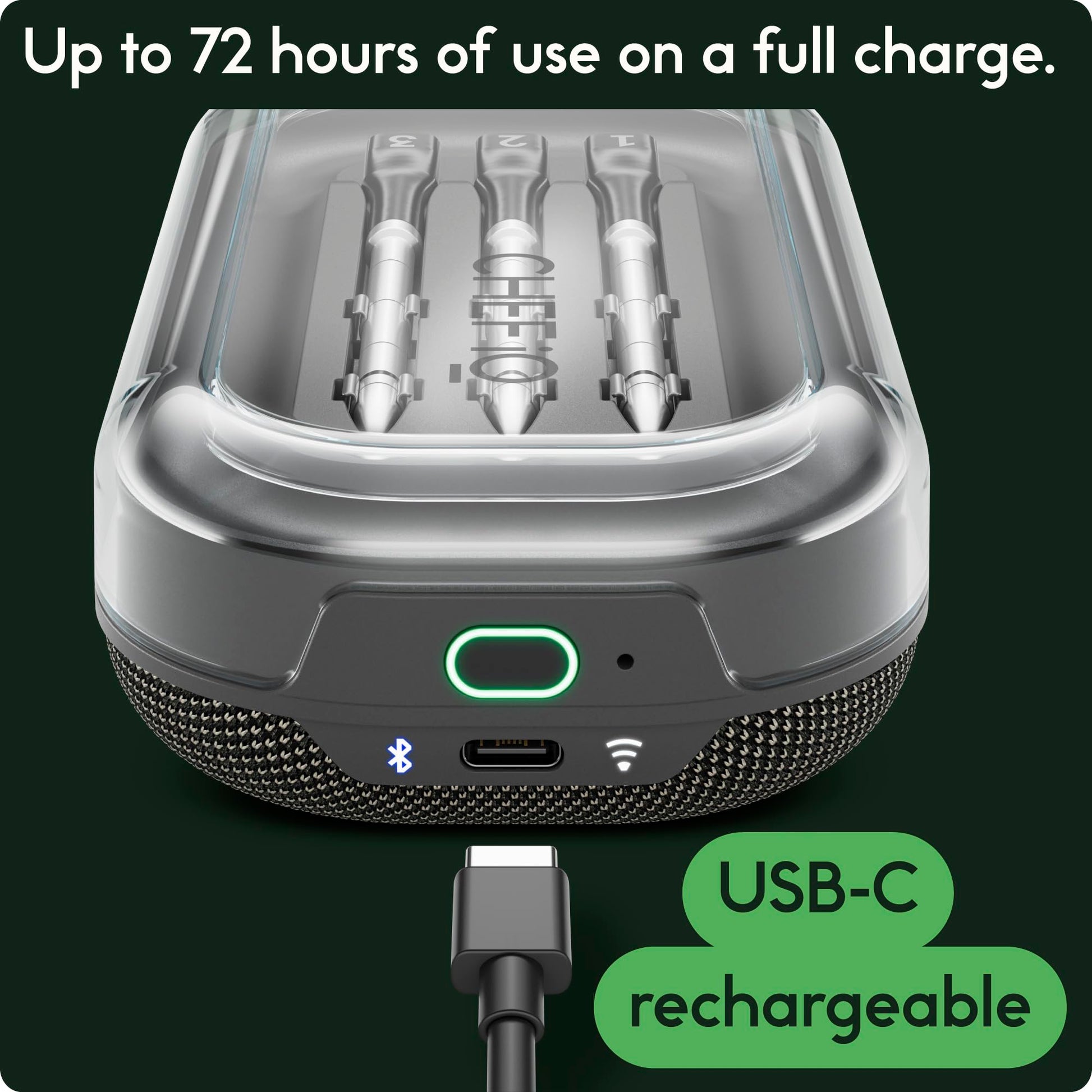 - HOURS OF USE WITH MINUTES OF CHARGING: This indoor-outdoor thermometer is ready when you need it with 40+ hours of use from a 10-minute charge or charge for 1 minute and get hours of use.