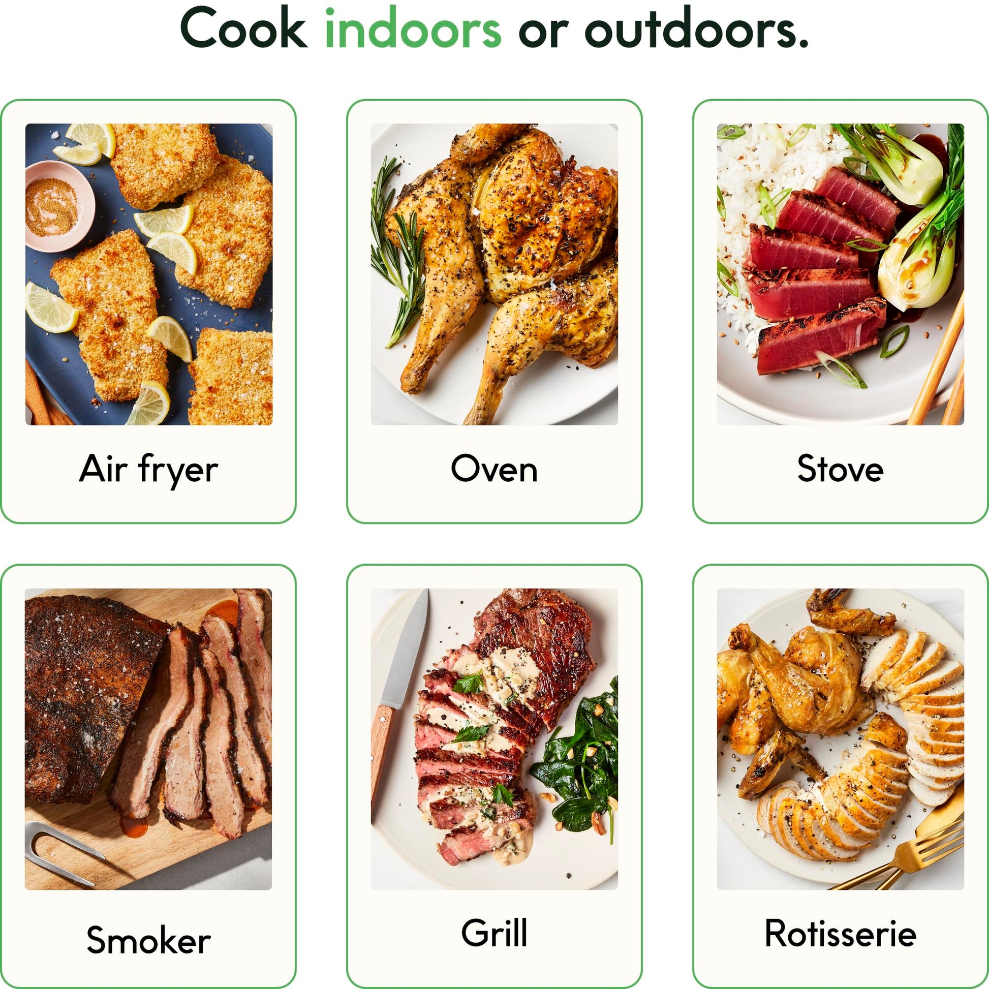 - AUDIBLE AND VISUAL REMINDERS: Hear reminders from the charging hub speaker and get app notifications for real-time internal temperature updates, flip reminders, rest indicators, estimated time left, and more.