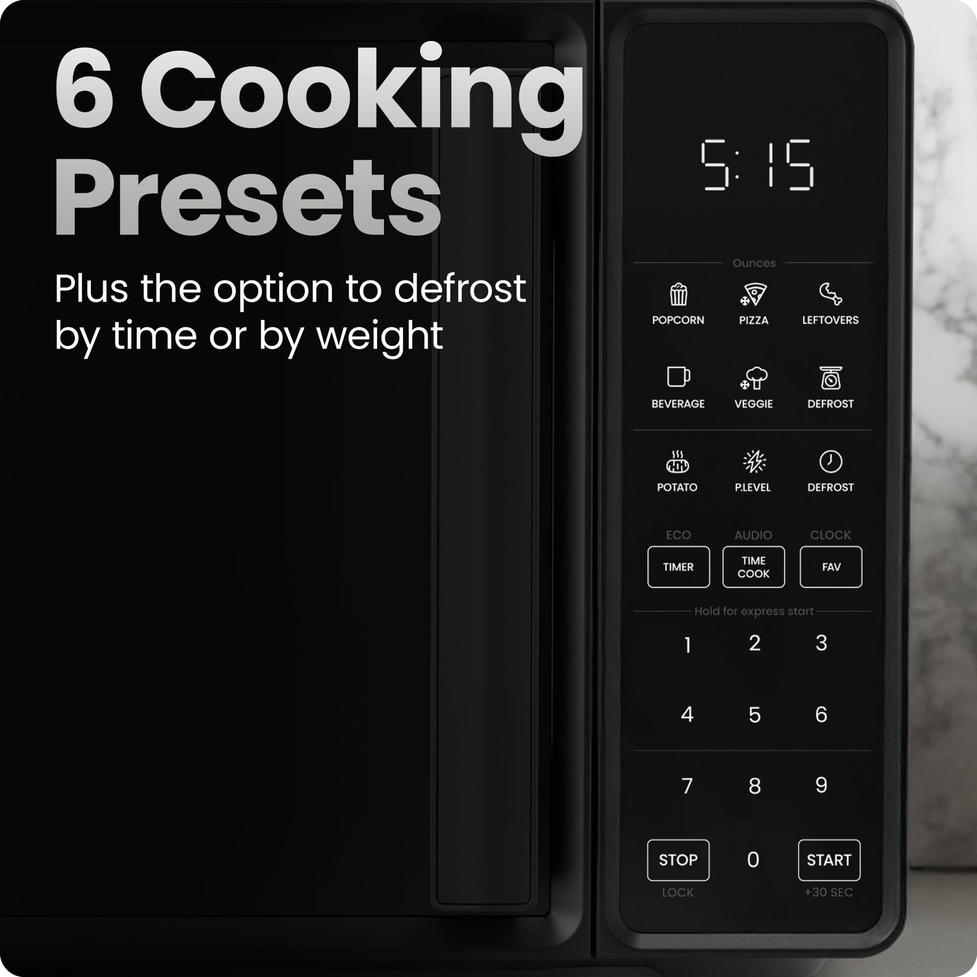 - MODERN DESIGN: This microwave countertop design fits in well alongside your other kitchen appliances. Its compact frame and sleek, black finish blend in well with any home décor. Plus, you can save power and disable the display when not in use with Eco Mode.
