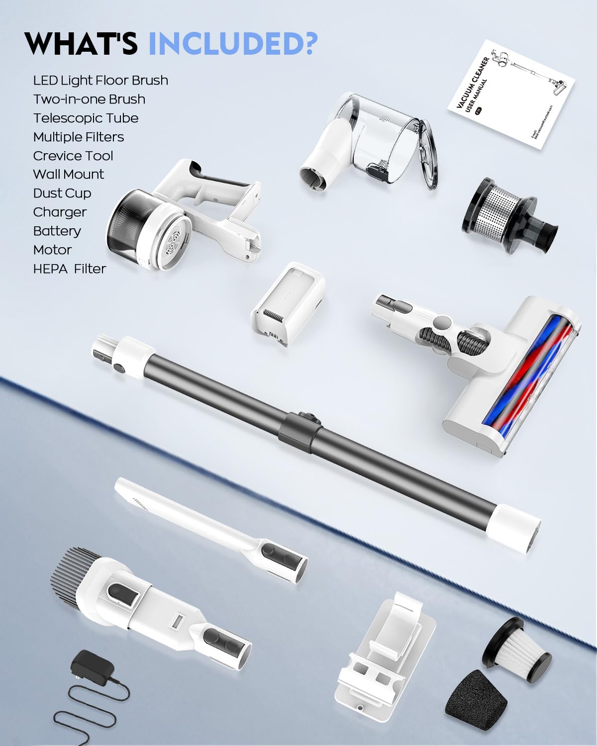 - Easy Maintenance with Washable: Cordless vacuums for home include washable filters and a dust cup that can be easily detachable to clean. Simply rinse and dry for reuse, maintaining better performance for your stick vacuum.