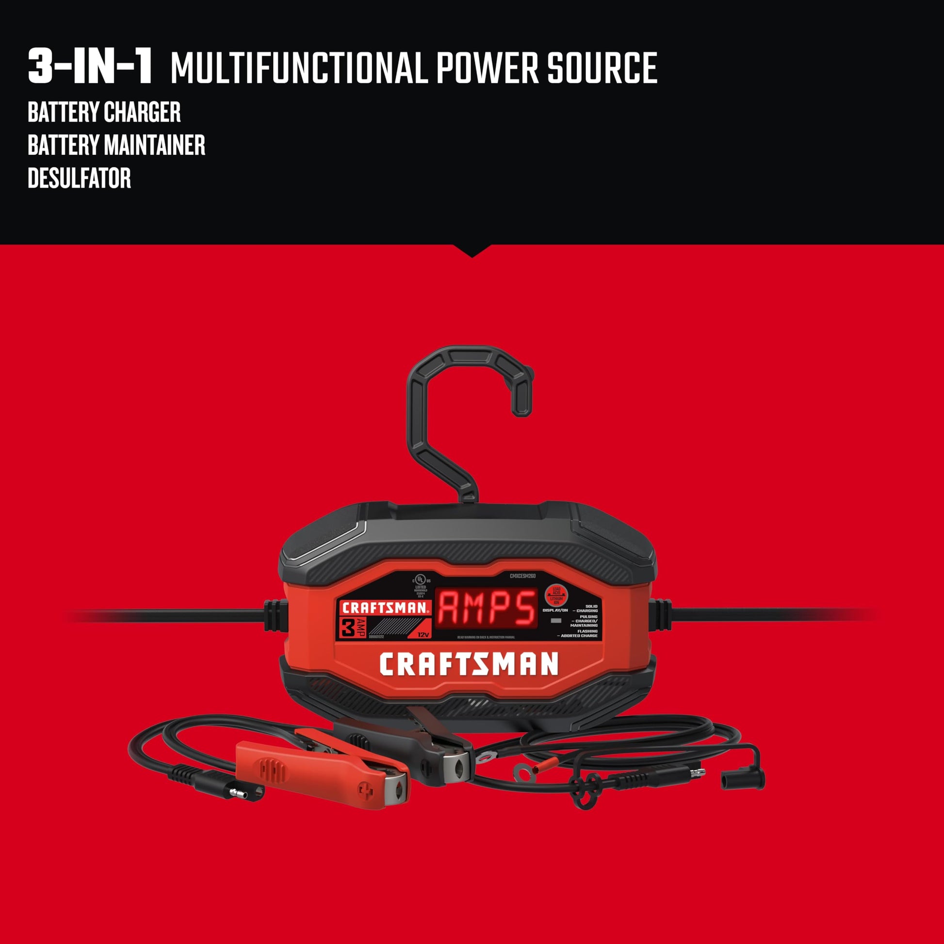 Details: Keep Your Batteries in Peak Condition with the CRAFTSMAN® CMXCESM260 – The Ultimate 3-in-1 Fully Automatic Battery Charger and Maintainer!